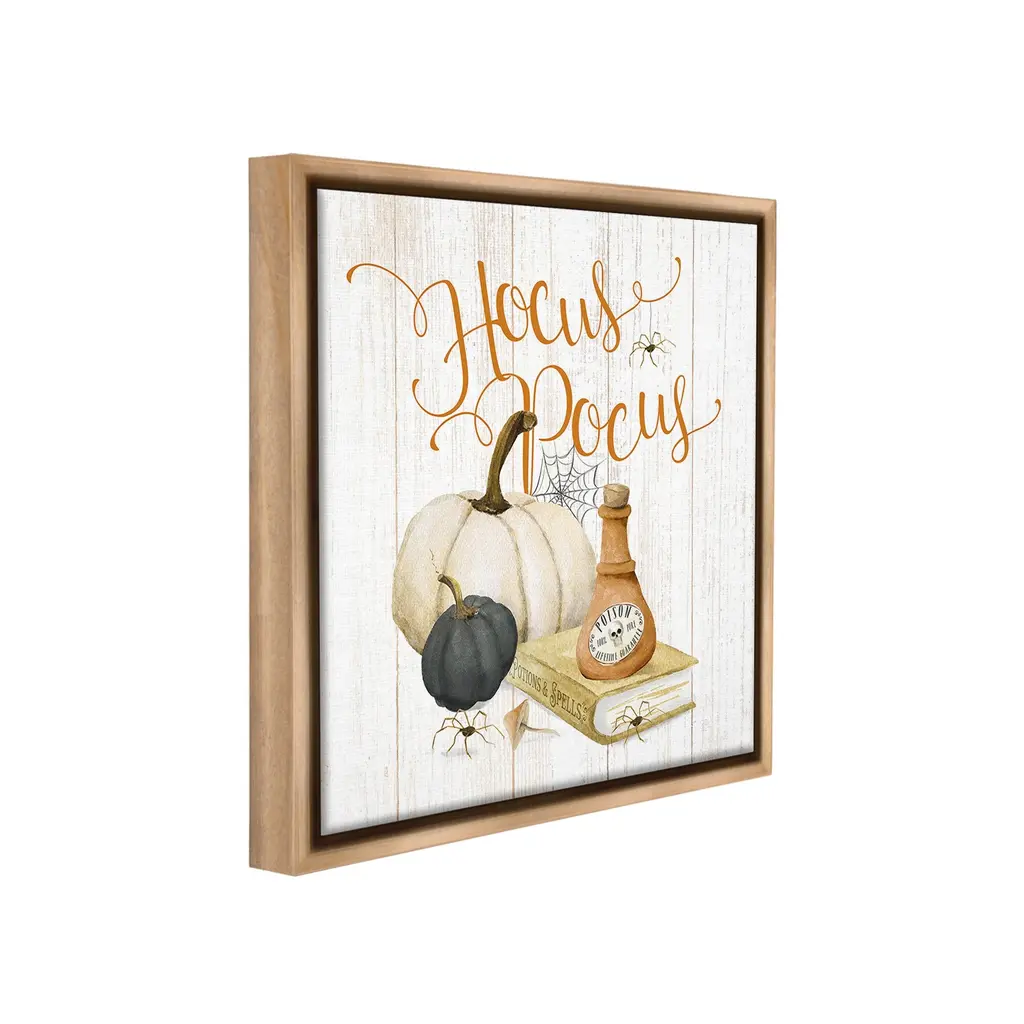 Elevate your home or office to the next level with Stupell Framed Floating Canvas Wall Art. Our premium hand-stretched canvas is mounted securely into a sturdy lightweight frame. The museum-style gap between the wrapped canvas and the box frame gives the illusion of floating artwork. Stupell Wall Art is made in the USA.Features: Dimensions: 18 x 1.7 x 18 Frame, 17 x 1.5 x 17 Canvas ArtFloating Frame Canvas Products are available in sizes 18"x18" and 25"x25". All Floating Frame Canvas Products have a 1.7" Depth.Wall Art is Ready to Hang with Hardware Free Hanging. No Installation required. For Easy Set Up Lean or Layer Artwork on Shelf or Against Wall. Artwork is Permently Fixed into the Frame.Our elevated 1.7" Thick Floating Frame is the perfect complement to our canvas style Wall Art. We use only the highest quality inks in house with industry leading printing solutions. Canvas is hand stretched over a durable wood foundation and then mounted securly into a Modern Box Frame. Made in the USA.Artwork Relates To: Seasonal, Fall, Autumn, Pumpkin, Potion, Poison, Witch, Book, Spider, Web, Mushroom, Halloween, Botanical, Hocus PocusDesign by Deane Beesley