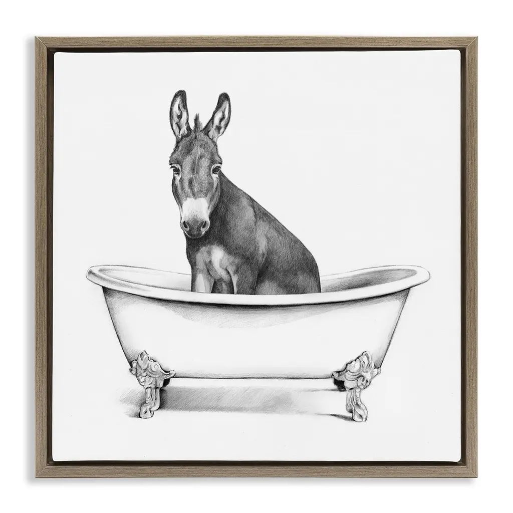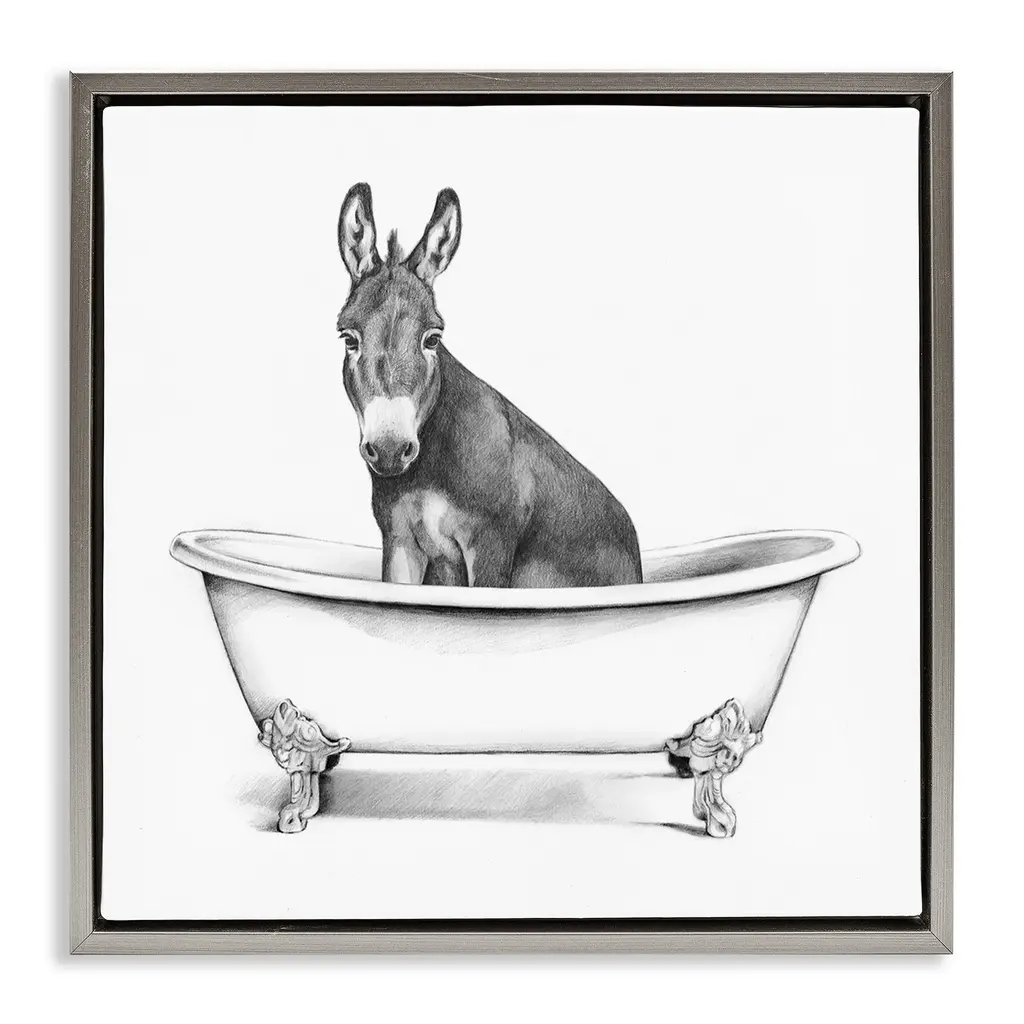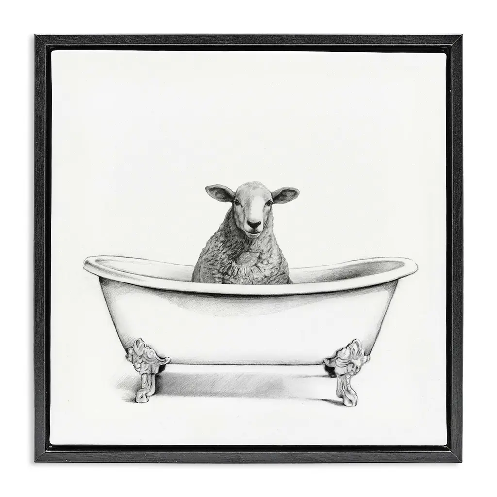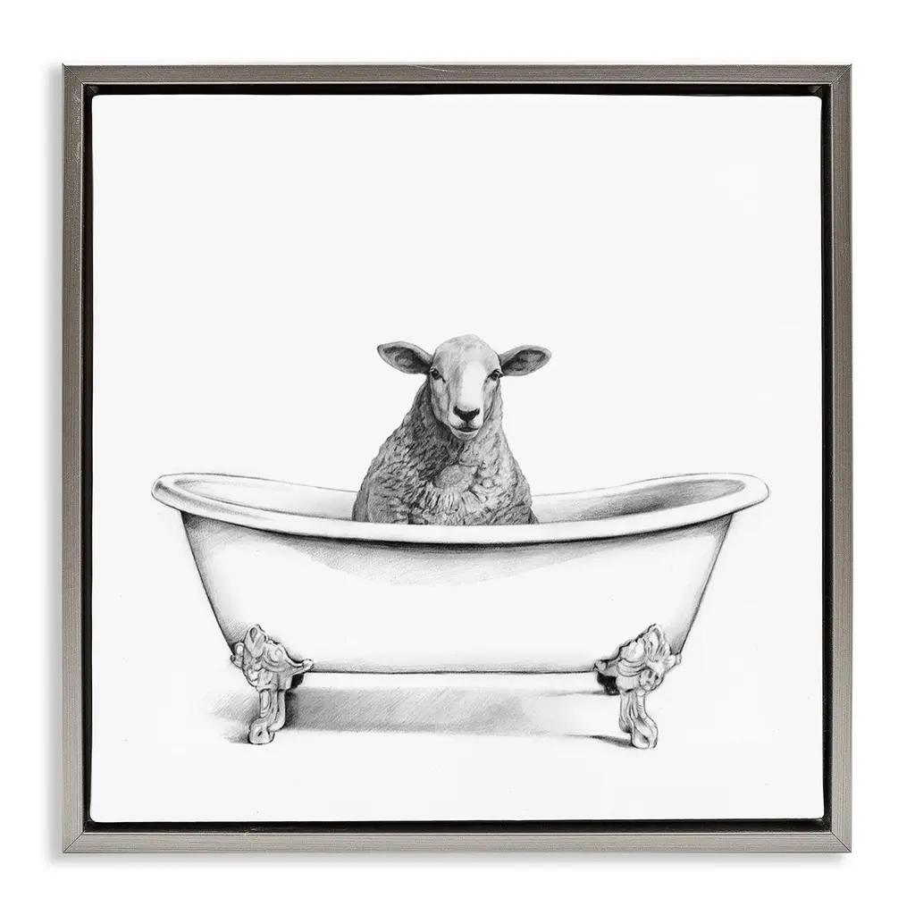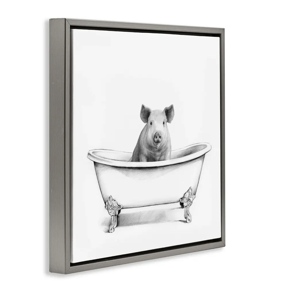 Elevate your home or office to the next level with Stupell Framed Floating Canvas Wall Art. Our premium hand-stretched canvas is mounted securely into a sturdy lightweight frame. The museum-style gap between the wrapped canvas and the box frame gives the illusion of floating artwork. Stupell Wall Art is made in the USA.Features: Dimensions: 18 x 1.7 x 18 Frame, 17 x 1.5 x 17 Canvas ArtFloating Frame Canvas Products are available in sizes 18"x18" and 25"x25". All Floating Frame Canvas Products have a 1.7" Depth.Wall Art is Ready to Hang with Hardware Free Hanging. No Installation required. For Easy Set Up Lean or Layer Artwork on Shelf or Against Wall. Artwork is Permently Fixed into the Frame.Our elevated 1.7" Thick Floating Frame is the perfect complement to our canvas style Wall Art. We use only the highest quality inks in house with industry leading printing solutions. Canvas is hand stretched over a durable wood foundation and then mounted securly into a Modern Box Frame. Made in the USA.Artwork Relates To: Bathroom, Bathtub, Animal, PigDesign by Victoria Borges