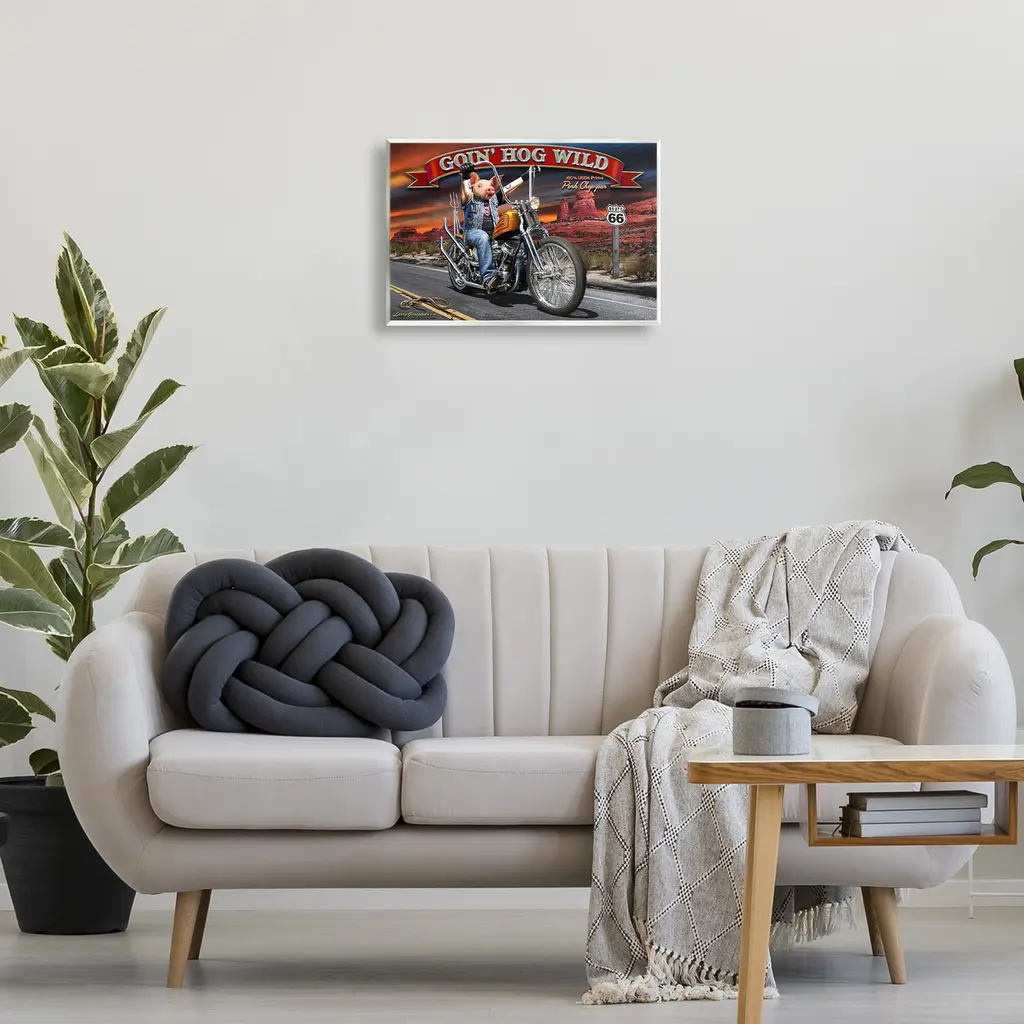Our wall plaques start as high-quality lithograph prints mounted on durable 0.5-inch thick MDF wood. Each piece is hand finished and comes with a fresh layer of white foil on the sides to give it a crisp, clean look. Plaques arrive ready to hang without installation and come with removable plastic corners to keep them from damage in transit. Stupell Industries Wall Art is made in the USA.Features: Dimensions: 15 x 0.5 x 10 InchesWall Plaque Sizes Include Standard: 15 x 0.5 x 10 Oversized: 19 x 0.5 x 13Wall Art is Ready to Hang with Hardware Free Hanging. No installation required. For Easy Set Up Lean or Layer Artwork on Shelf or Against Wall.All of our wall plaques start off as high quality lithograph prints that are then mounted on durable 0.5 inch thick MDF wood. Each piece is hand finished and comes with a fresh layer of foil on the sides to give it a crisp clean look. Made In USA.Artwork Relates To: Motorcycle, Transportation, Vehicle, Hog, Pig, Road, Desert, Route 66, Chopper, Goin' Hog WildDesign by Larry Grossman
