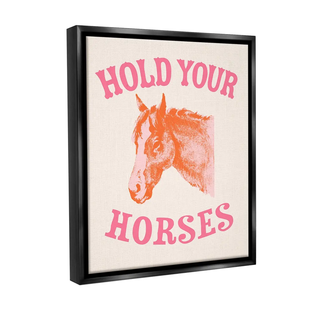 Stupell Hold Your Horses Phrase Framed Floater Canvas Wall Art Design By Victoria Barnes - 25 X 31 - Black