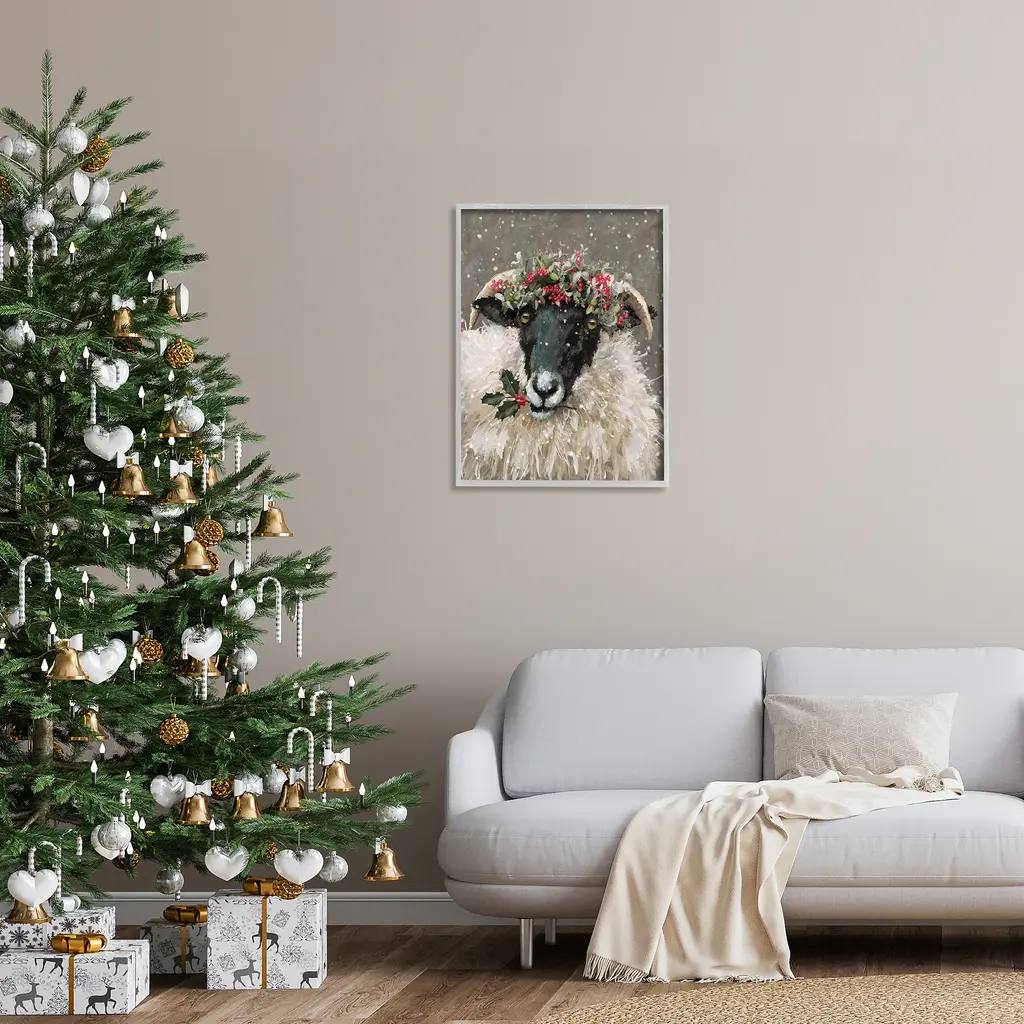 Add dimension to any room with our textured Framed Giclee Artwork. Our framed artwork is securely mounted into a 1.5-inch thick wood grain frame and ready to hang. Frames are available in three alluring styles: black, gray farmhouse and white. In addition, you should check out our oversized options if you want a statement piece. Stupell Wall Art is made in the USA.Features: Dimensions: 11 x 1.5 x 14 FramedFramed Giclee Sizes Include Standard: 11 x 1.5 x 14 Large: 16 x 1.5 x 20 Oversized: 24 x 1.5 x 30Wall Art is Ready to Hang - No Installation or Hardware Needed. For Easy Set Up Lean or Layer Artwork on Shelf or Against Wall.Our giclée prints are carefully mounted on a durable MDF backing, and then perfectly finished in a 1.5 inch thick woodgrain frame. Mounted frame colors include black, gray farmhouse and white. Made In USA.Artwork Relates To: Animal, Mammal, Flower, Holly Berry, Botanical, Christmas, Snow, SheepDesign by Pip Wilson