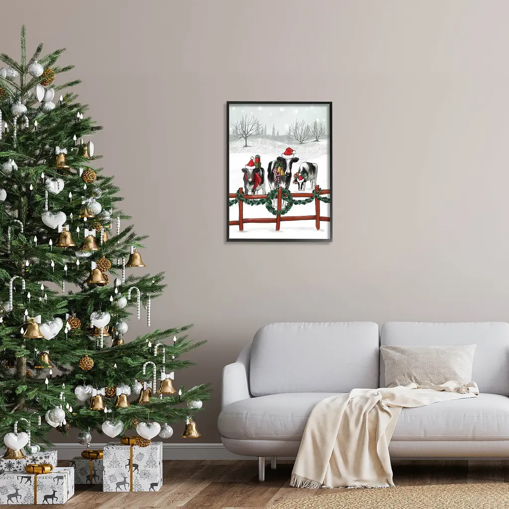 Our Framed Giclee Wall Art adds a touch of class to any space in your home or office. Frames are available in three alluring styles: black, gray farmhouse and white. Our textured artwork will add more depth and dimension to any space. Each piece is mounted with a 1.5 inch thick wood grain frame that is ready to hang! Looking for a statement piece? We have oversized artwork available.Features: Dimensions: 11 x 1.5 x 14 FramedFramed Giclee Sizes Include Standard: 11 x 1.5 x 14 Large: 16 x 1.5 x 20 Oversized: 24 x 1.5 x 30Wall Art is Ready to Hang - No Installation or Hardware Needed. For Easy Set Up Lean or Layer Artwork on Shelf or Against Wall.Our giclée prints are carefully mounted on a durable MDF backing, and then perfectly finished in a 1.5 inch thick woodgrain frame. Mounted frame colors include black, gray farmhouse and white. Made In USA.Artwork Relates To: Cow, Cattle, Mammal, Animal, Snow, Farm, Santa Hat, Wreath, Seasonal, HolidayDesign by Caverly Smith