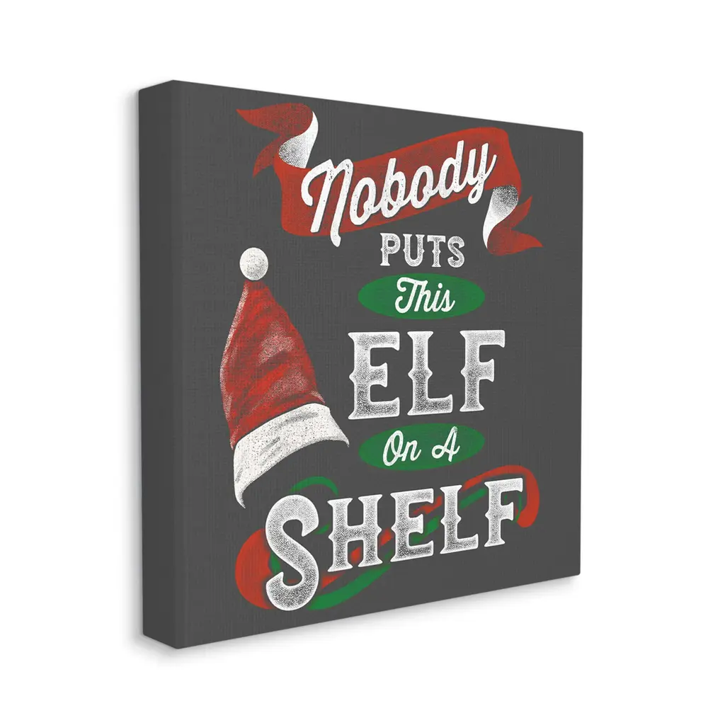 Stupell Holiday Elf Phrase Santa Hat Red Green Christmas Canvas Wall Art - 17 X 17