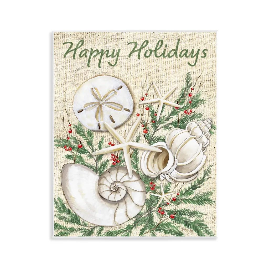 Our wall plaques start as high-quality lithograph prints mounted on durable 0.5-inch thick MDF wood. Each piece is hand finished and comes with a fresh layer of white foil on the sides to give it a crisp, clean look. Plaques arrive ready to hang without installation and come with removable plastic corners to keep them from damage in transit. Stupell Wall Art is made in the USA.Features: Dimensions: 11 x 0.5 x 14 InchesWall Art is Ready to Hang with Hardware Free Hanging. No installation required. For Easy Set Up Lean or Layer Artwork on Shelf or Against Wall.All of our wall plaques start off as high quality lithograph prints that are then mounted on durable 0.5 inch thick MDF wood. Each piece is hand finished and comes with a fresh layer of foil on the sides to give it a crisp clean look. Made In USA.Artwork Relates To: Holiday, Christmas, Winter, Seasonal, Wreath, Nautical, SeashellsDesign by Paul Brent