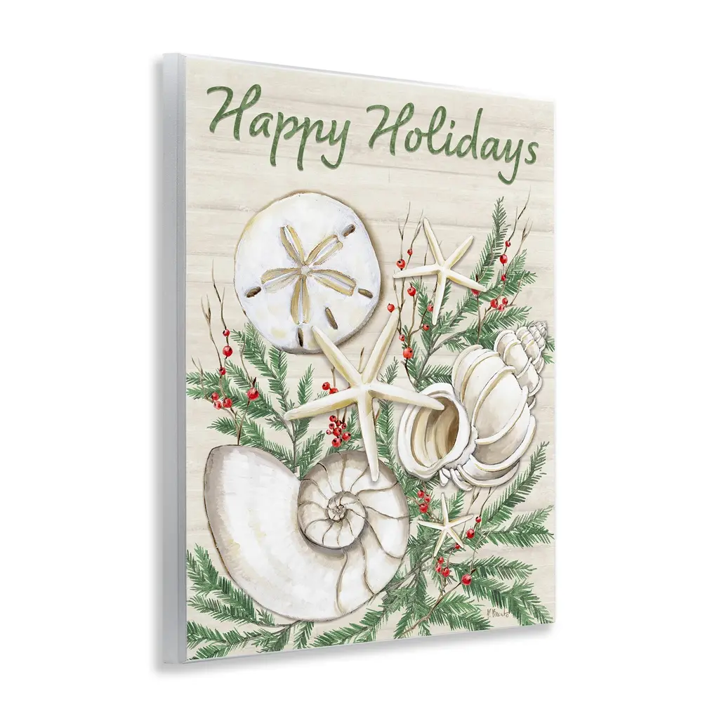 Stupell Holiday Seashells & Holly Wall Plaque Art Design By Paul Brent - 11 X 14