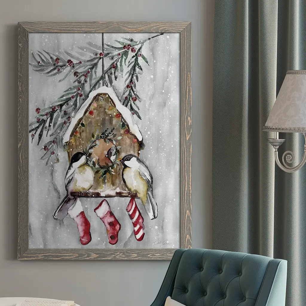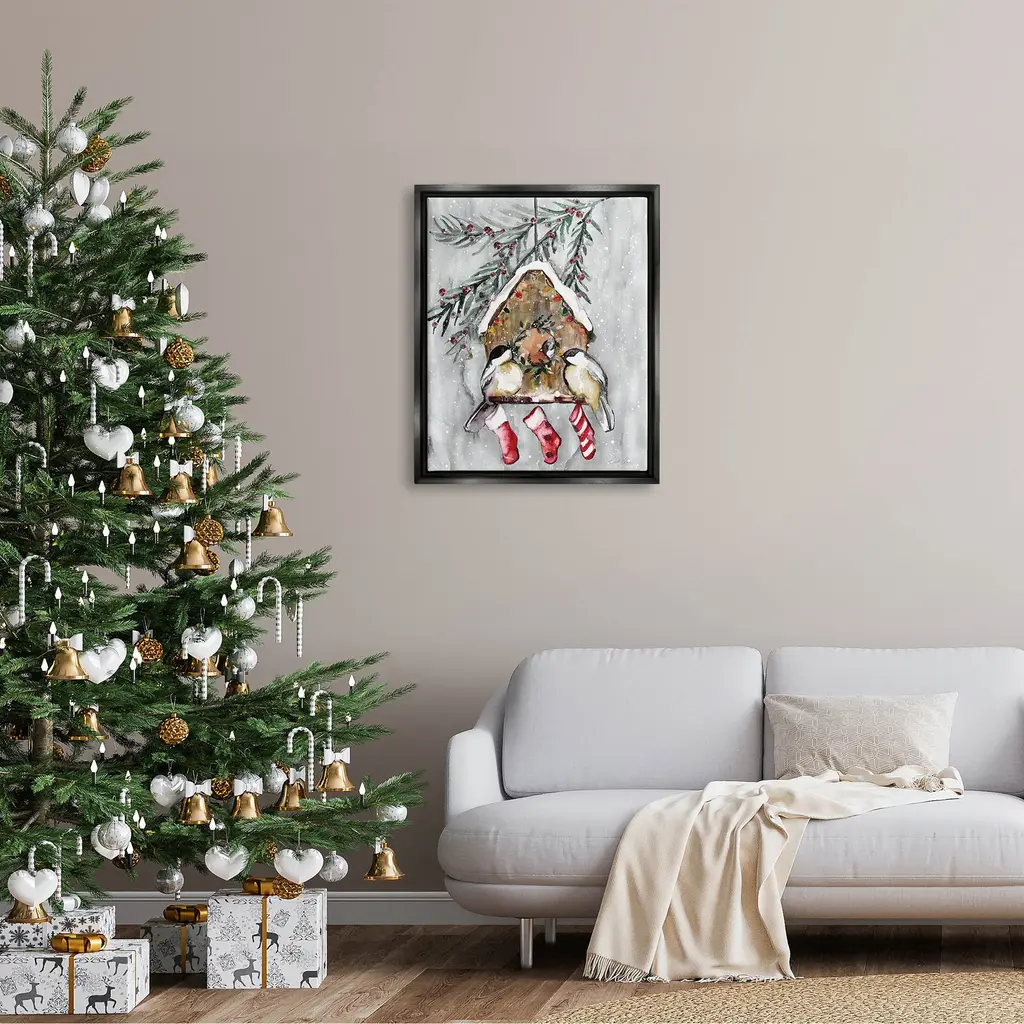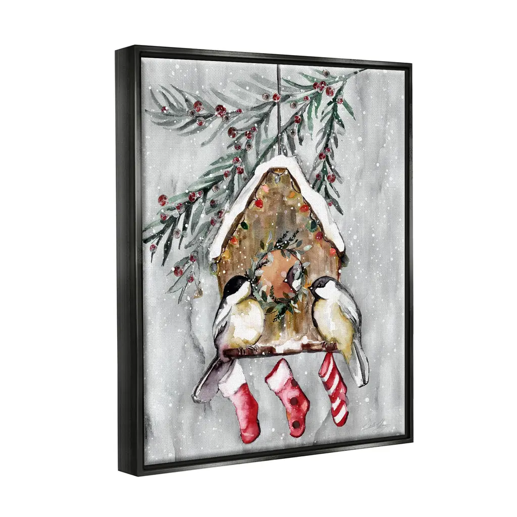 Stupell Holiday Stockings Birdhouse Perched Framed Floater Canvas Wall Art, Design By Stella Chang - 25 X 31 - Black