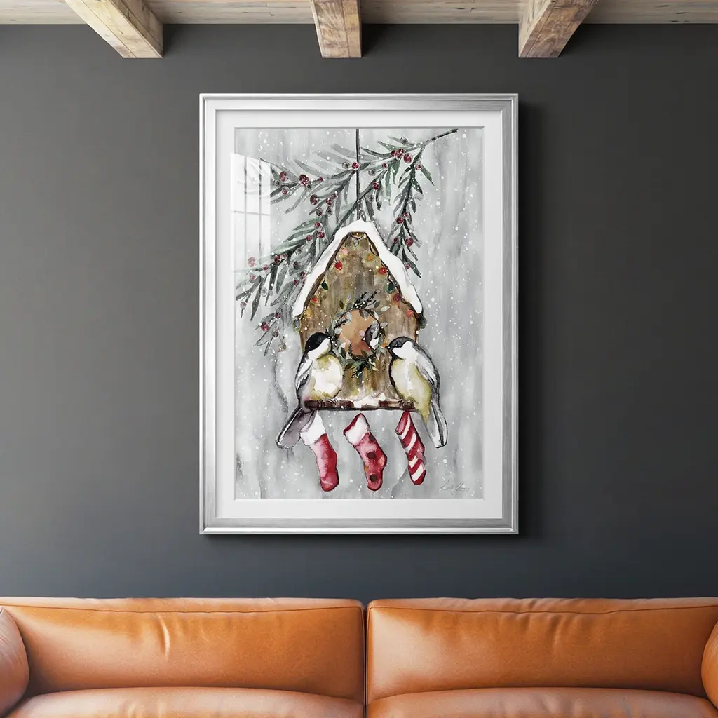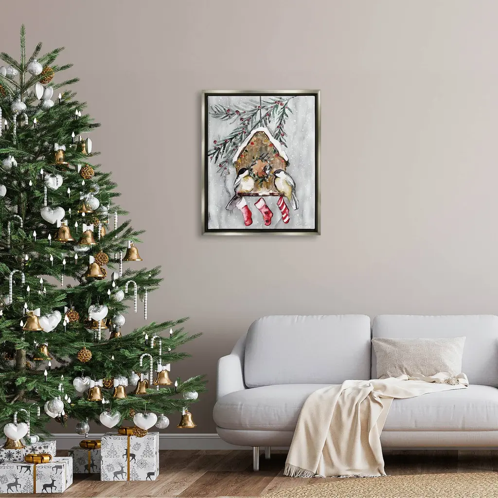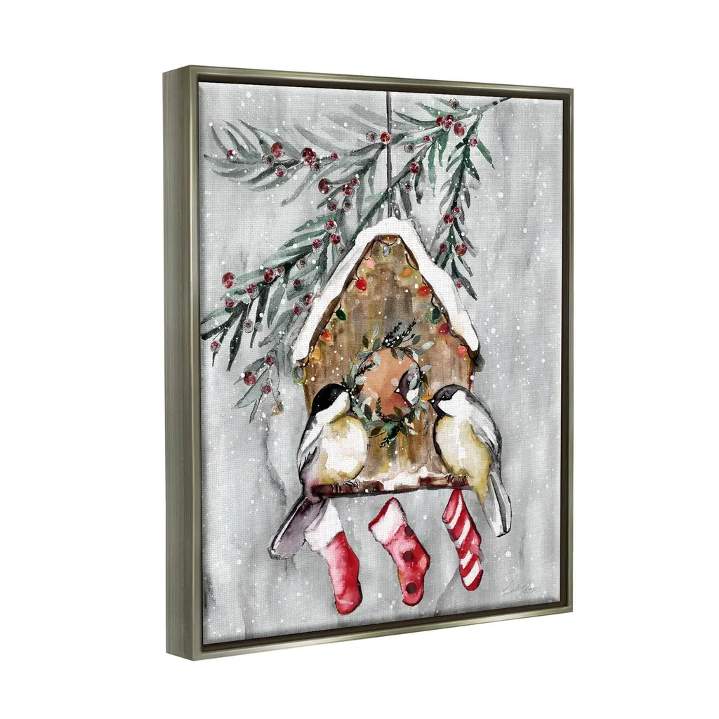 Stupell Holiday Stockings Birdhouse Perched Framed Floater Canvas Wall Art, Design By Stella Chang - 25 X 31 - Grey