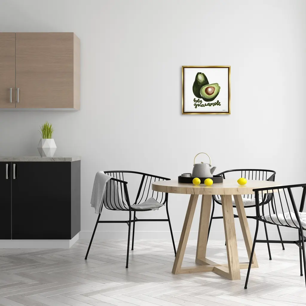 Elevate your home or office to the next level with Stupell Framed Floating Canvas Wall Art. Our premium hand-stretched canvas is mounted securely into a sturdy lightweight frame. The museum-style gap between the wrapped canvas and the box frame gives the illusion of floating artwork. Stupell Wall Art is made in the USA.Features: Dimensions: 18 x 1.7 x 18 Frame, 17 x 1.5 x 17 Canvas ArtFloating Frame Canvas Products are available in sizes 18"x18" and 25"x25". All Floating Frame Canvas Products have a 1.7" Depth.Wall Art is Ready to Hang with Hardware Free Hanging. No Installation required. For Easy Set Up Lean or Layer Artwork on Shelf or Against Wall. Artwork is Permently Fixed into the Frame.Our elevated 1.7" Thick Floating Frame is the perfect complement to our canvas style Wall Art. We use only the highest quality inks in house with industry leading printing solutions. Canvas is hand stretched over a durable wood foundation and then mounted securly into a Modern Box Frame. Made in the USA.Artwork Relates To: Food, Fruit, Plant, Produce, Avocado, Phrase, Humor, Modern, Holy GuacamoleDesign by Molly Mattin