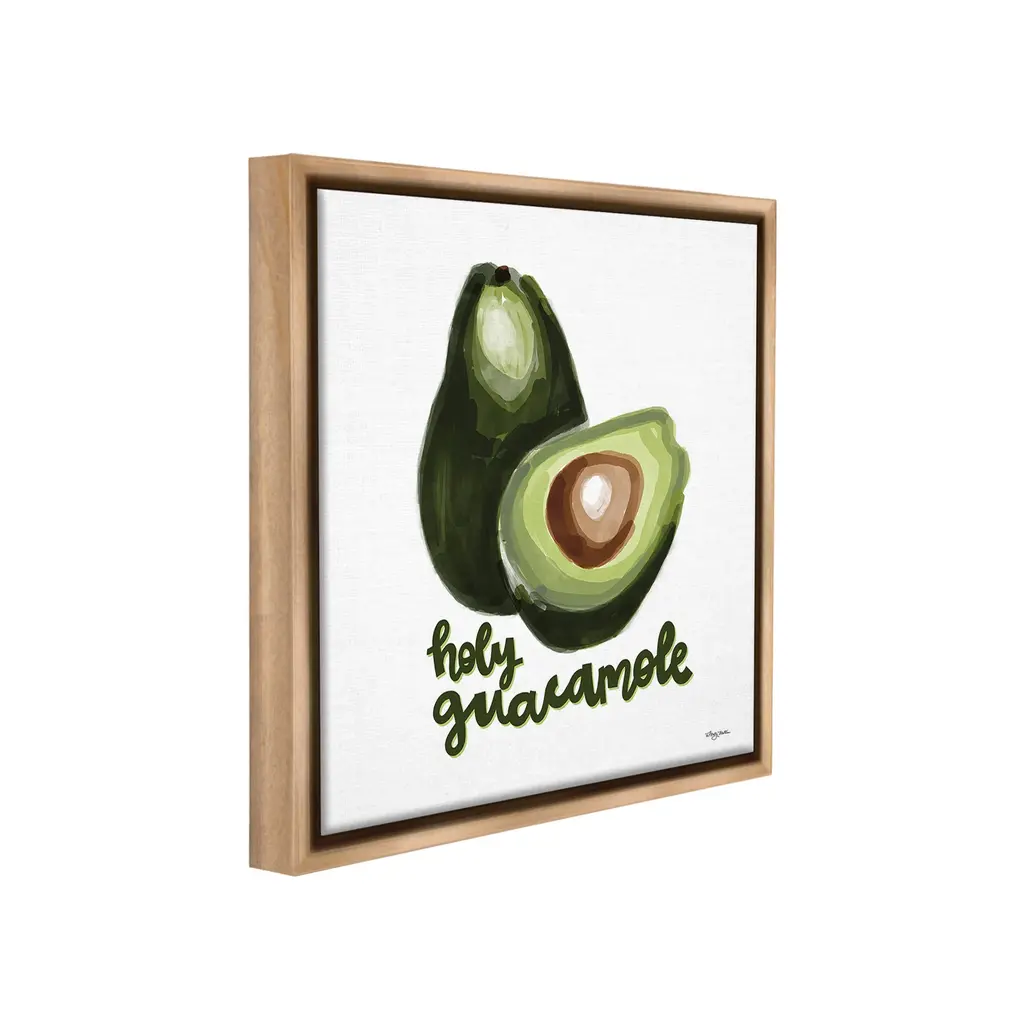 Elevate your home or office to the next level with Stupell Framed Floating Canvas Wall Art. Our premium hand-stretched canvas is mounted securely into a sturdy lightweight frame. The museum-style gap between the wrapped canvas and the box frame gives the illusion of floating artwork. Stupell Wall Art is made in the USA.Features: Dimensions: 18 x 1.7 x 18 Frame, 17 x 1.5 x 17 Canvas ArtFloating Frame Canvas Products are available in sizes 18"x18" and 25"x25". All Floating Frame Canvas Products have a 1.7" Depth.Wall Art is Ready to Hang with Hardware Free Hanging. No Installation required. For Easy Set Up Lean or Layer Artwork on Shelf or Against Wall. Artwork is Permently Fixed into the Frame.Our elevated 1.7" Thick Floating Frame is the perfect complement to our canvas style Wall Art. We use only the highest quality inks in house with industry leading printing solutions. Canvas is hand stretched over a durable wood foundation and then mounted securly into a Modern Box Frame. Made in the USA.Artwork Relates To: Food, Fruit, Plant, Produce, Avocado, Phrase, Humor, Modern, Holy GuacamoleDesign by Molly Mattin