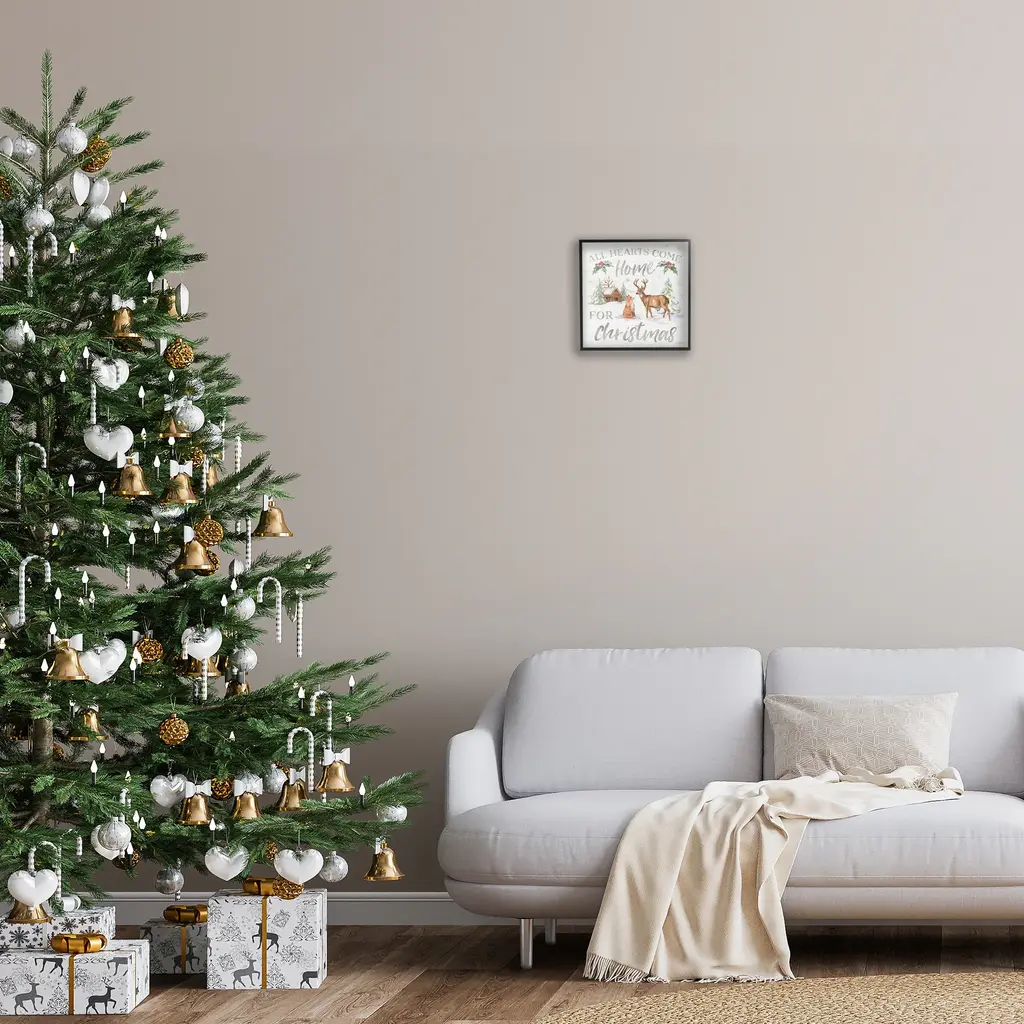Add dimension to any room with our textured Framed Giclee Artwork. Our framed artwork is securely mounted into a 1.5-inch thick wood grain frame and ready to hang. Frames are available in three alluring styles: black, gray farmhouse and white. In addition, you should check out our oversized options if you want a statement piece. Stupell Wall Art is made in the USA.Features: Dimensions: 12 x 1.5 x 12 FramedFramed Giclee Product Sizes Include 12"x12", 17"x17", and 24"x24". Framed Giclee Products have a 1.5" Depth. Wall Art is Ready to Hang with Hardware Free Hanging. No installation required. For Easy Set Up Lean or Layer Artwork on Shelf or Against Wall.Our giclée prints are carefully mounted on a durable MDF backing, and then perfectly finished in a 1.5 inch thick woodgrain frame. Mounted frame colors include black, gray farmhouse and white. Made In USA.Artwork Relates To: Animal, Deer, Fox, Mammal, Wildlife, Antler, Holiday, Seasonal, Winter, Snow, Cabin, Christmas, Lodge, All Hearts Come Home for ChristmasDesign by Silvia Vileva