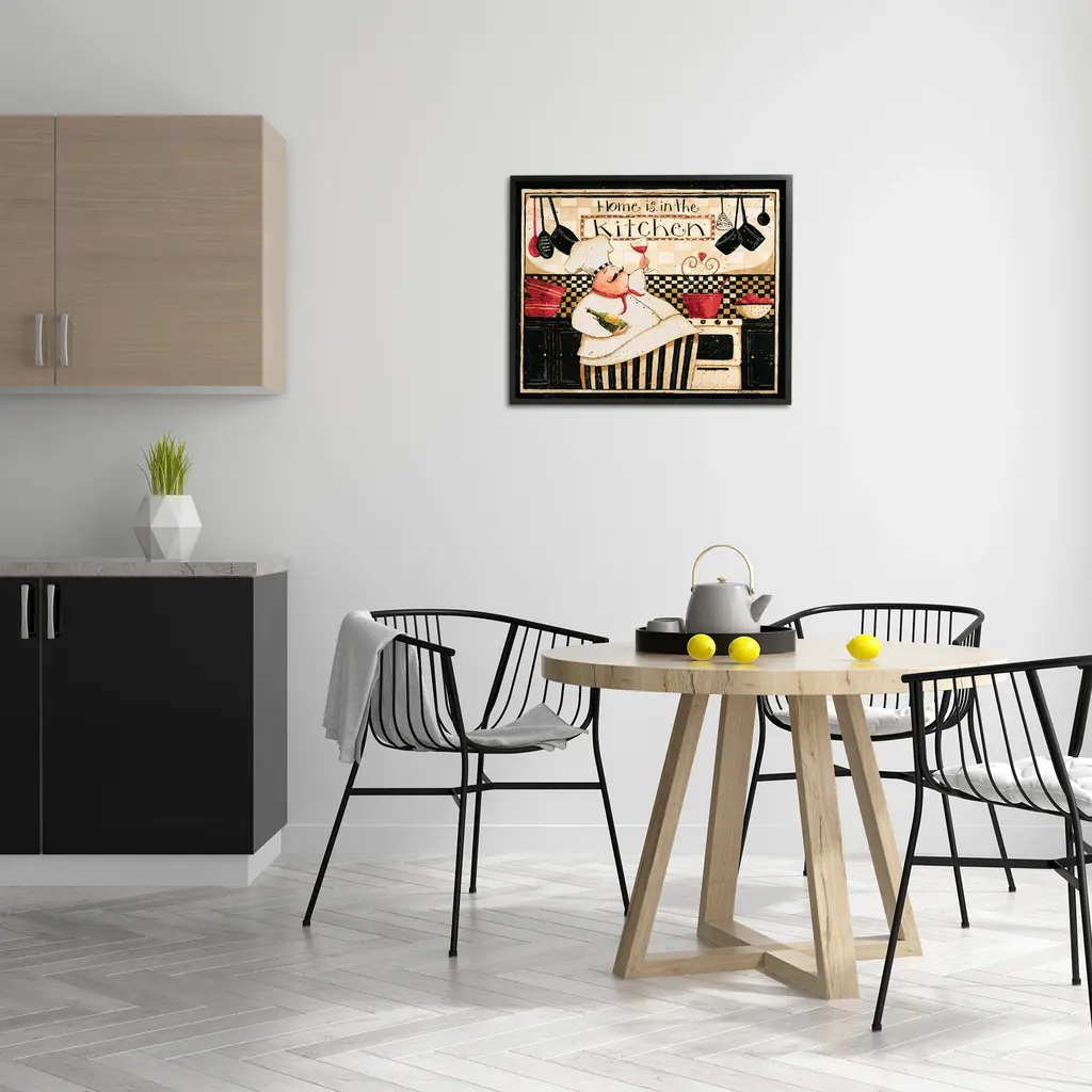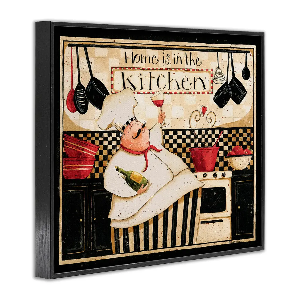 Stupell Home Is In The Kitchen With Happy Chef Illustration Framed Wall Art - 30 X 24 - Black