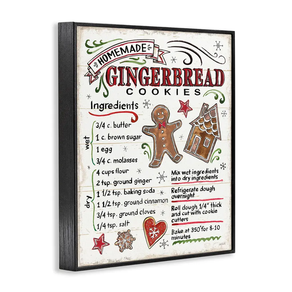 Stupell Homemade Gingerbread Cookies Holiday Cooking Instructions Framed Wall Art - Red - 11 X 14 - Black