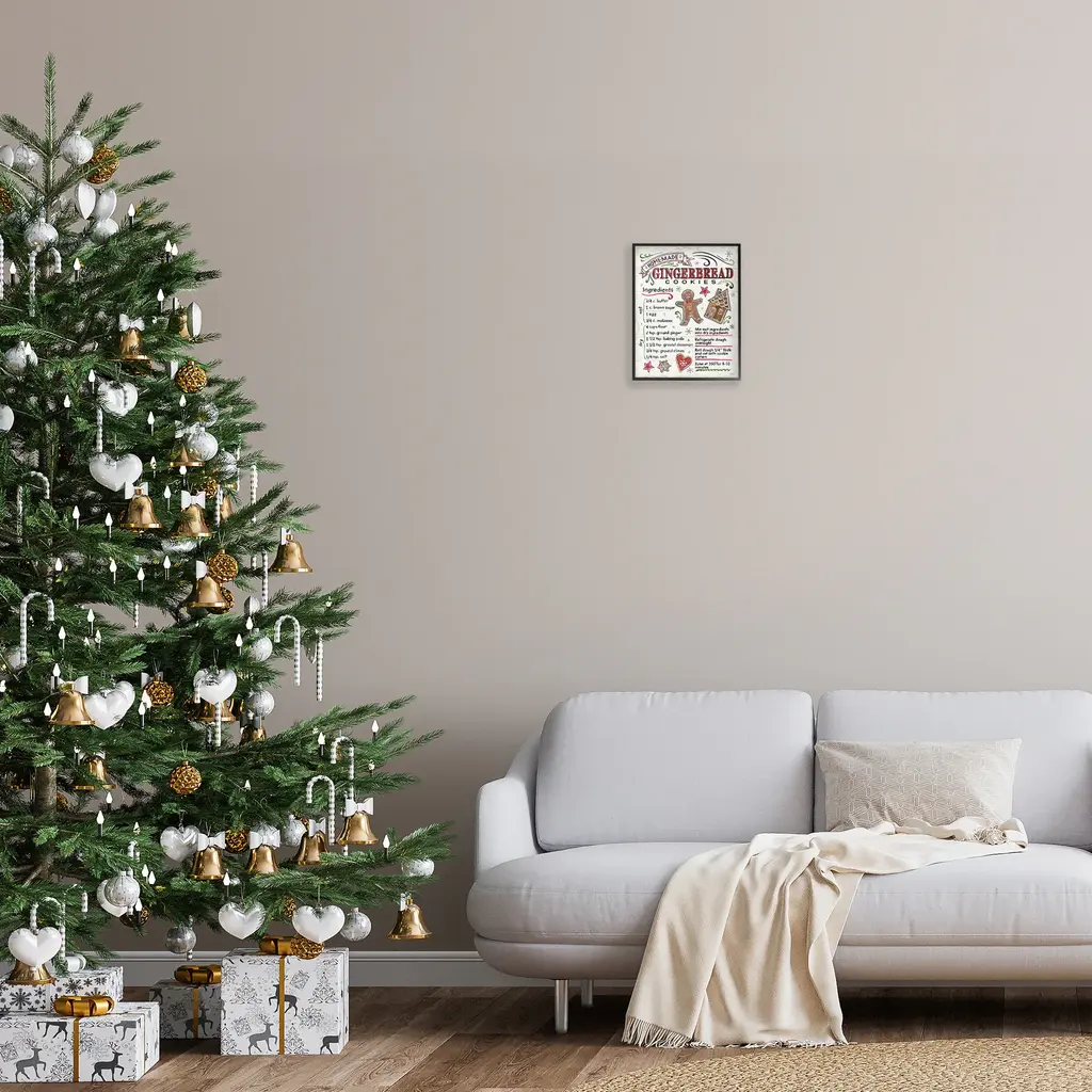 Stupell Homemade Gingerbread Cookies Holiday Cooking Instructions Framed Wall Art - Red - 11 X 14 - Grey