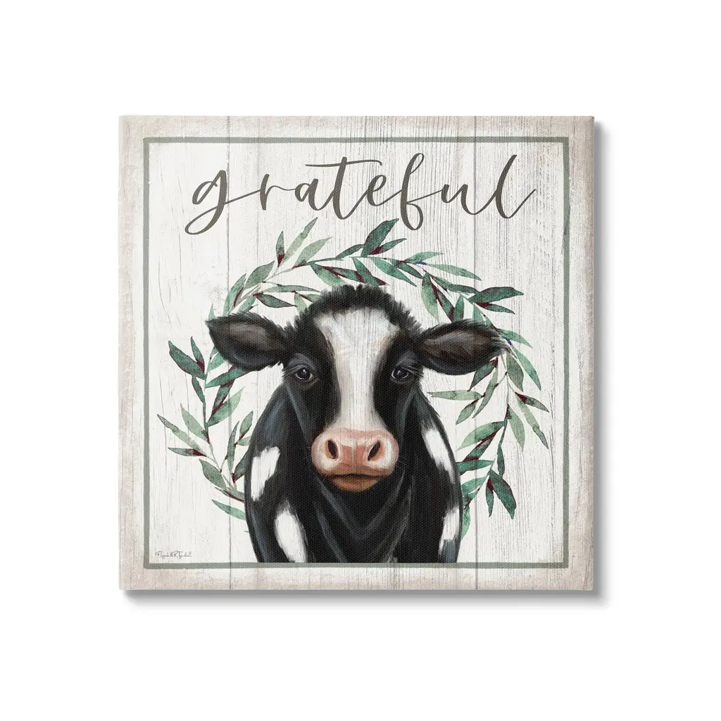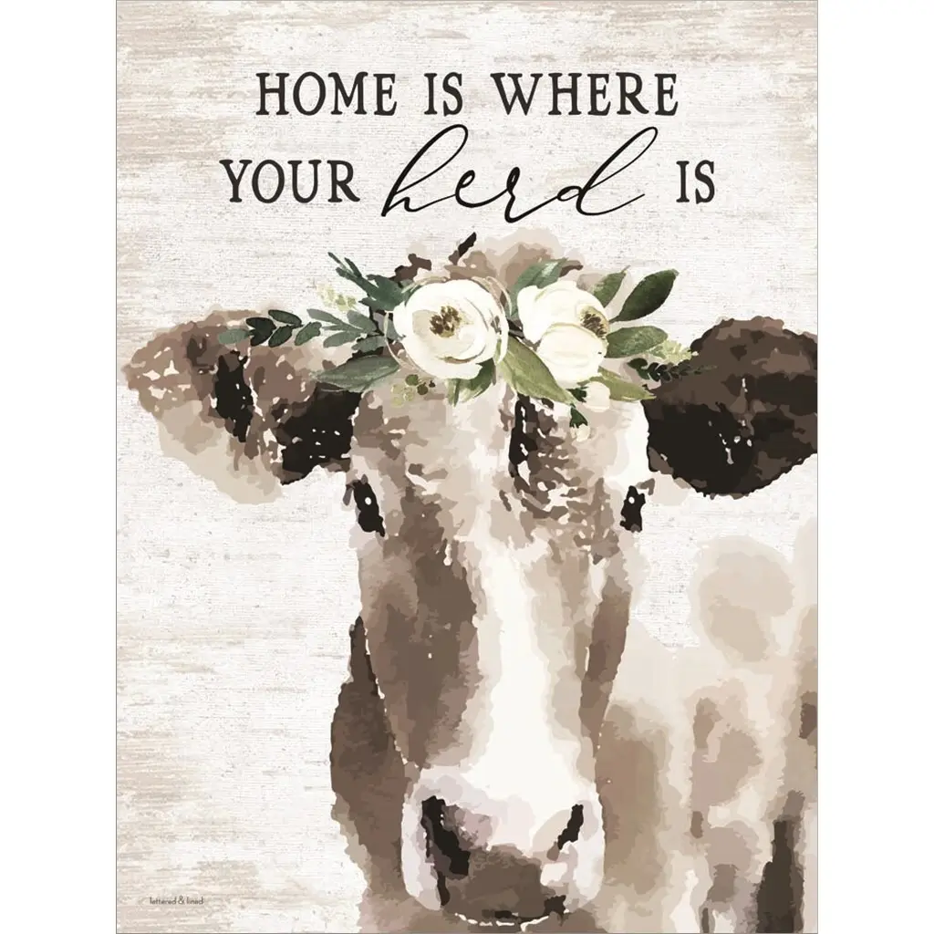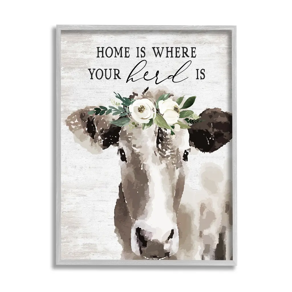Stupell Home's Where Your Herd Is Boho Floral Cow Framed Wall Art - 16 X 20 - Black