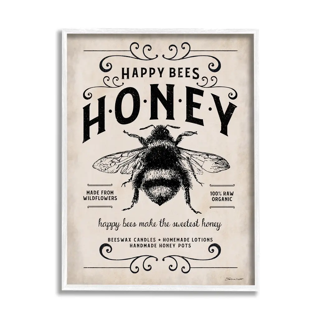 Stupell Honey Bee Rustic Farm Textured Word Design,11x14, Design By Artist Stephanie Workman Marrott - 24 X 30 - White