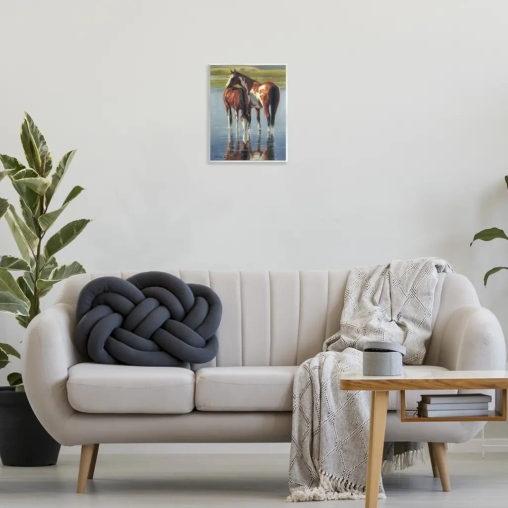 Our wall plaques start as high-quality lithograph prints mounted on durable 0.5-inch thick MDF wood. Each piece is hand finished and comes with a fresh layer of white foil on the sides to give it a crisp, clean look. Plaques arrive ready to hang without installation and come with removable plastic corners to keep them from damage in transit. Stupell Wall Art is made in the USA.Features: Dimensions: 11 x 0.5 x 14 InchesWall Art is Ready to Hang with Hardware Free Hanging. No installation required. For Easy Set Up Lean or Layer Artwork on Shelf or Against Wall.All of our wall plaques start off as high quality lithograph prints that are then mounted on durable 0.5 inch thick MDF wood. Each piece is hand finished and comes with a fresh layer of foil on the sides to give it a crisp clean look. Made In USA.Artwork Relates To: Animal, Colt Horse, Horse, Mammal, Stallion, Foal, Lake, Pond, RiverDesign by Victoria Schultz