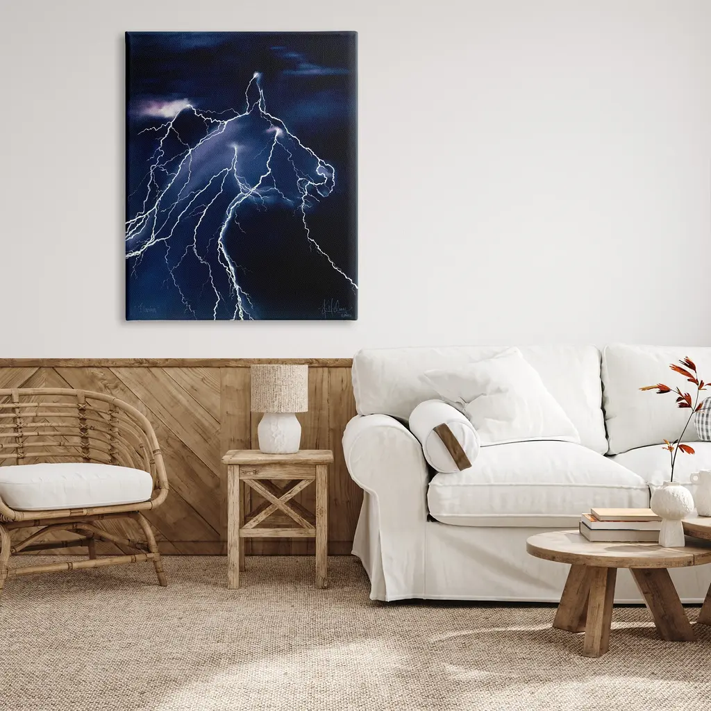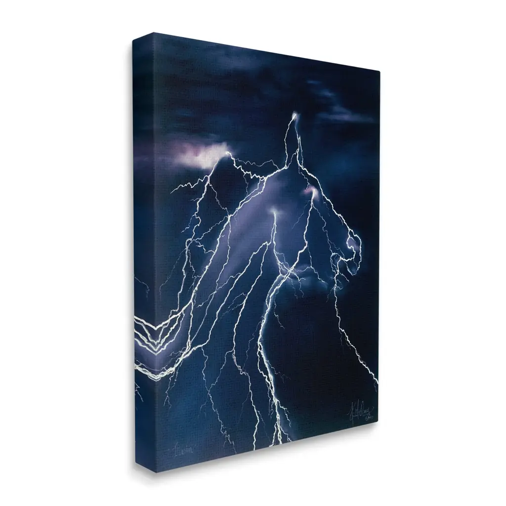 We create our stretched canvas to the highest standards. Using only the highest quality inks and canvas on Mimaki printers, we hand-cut and stretch each piece over a 1.5-inch thick wooden frame for hanging. As a result, the art comes ready to hang on the sturdy ledge with no installation required. Stupell Wall Art is made in the USA.Features: Dimensions: 16 x 1.5 x 20 InchesStretched Canvas Sizes Include Standard: 16 x 1.5 x 20 Large: 20 x 1.5 x 30 X-Large: 30 x 1.5 x 40 Oversized: 36 x 1.5 x 48Wall Art is Ready to Hang with Hardware Free Hanging. No installation required. For Easy Set Up Lean or Layer Artwork on Shelf or Against Wall.Our stretched canvas is created with the highest standards. We use only the highest quality inks and canvas on our in house Mimaki printers, and then hand cut and stretch each piece over a 1.5 inch thick wooden frame for hanging. Made In USA.Artwork Relates To: Nature, Storm, Thunderstorm, Lightning, Sky, HorseDesign by Spirit Horse