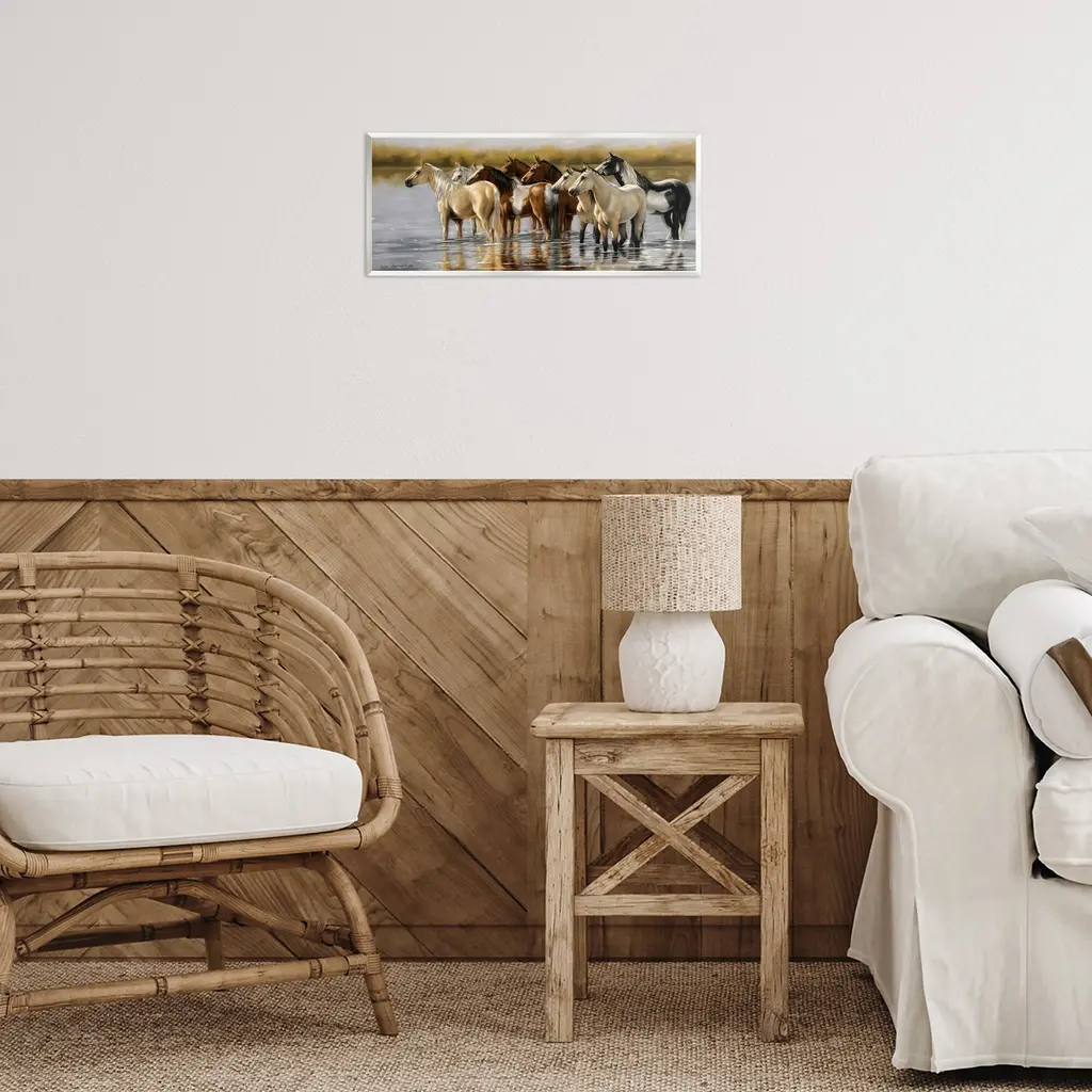 Our wall plaques start as high-quality lithograph prints mounted on durable 0.5-inch thick MDF wood. Each piece is hand finished and comes with a fresh layer of white foil on the sides to give it a crisp, clean look. Plaques arrive ready to hang without installation and come with removable plastic corners to keep them from damage in transit. Stupell Wall Art is made in the USA.Features: Dimensions: 17 x 0.5 x 7 InchesWall Art is Ready to Hang with Hardware Free Hanging. No installation required. For Easy Set Up Lean or Layer Artwork on Shelf or Against Wall.All of our wall plaques start off as high quality lithograph prints that are then mounted on durable 0.5 inch thick MDF wood. Each piece is hand finished and comes with a fresh layer of foil on the sides to give it a crisp clean look. Made In USA.Artwork Relates To: Animal, Herd, Horse, Mammal, Wildlife, Stallion, Nature, LandscapeDesign by Victoria Schultz