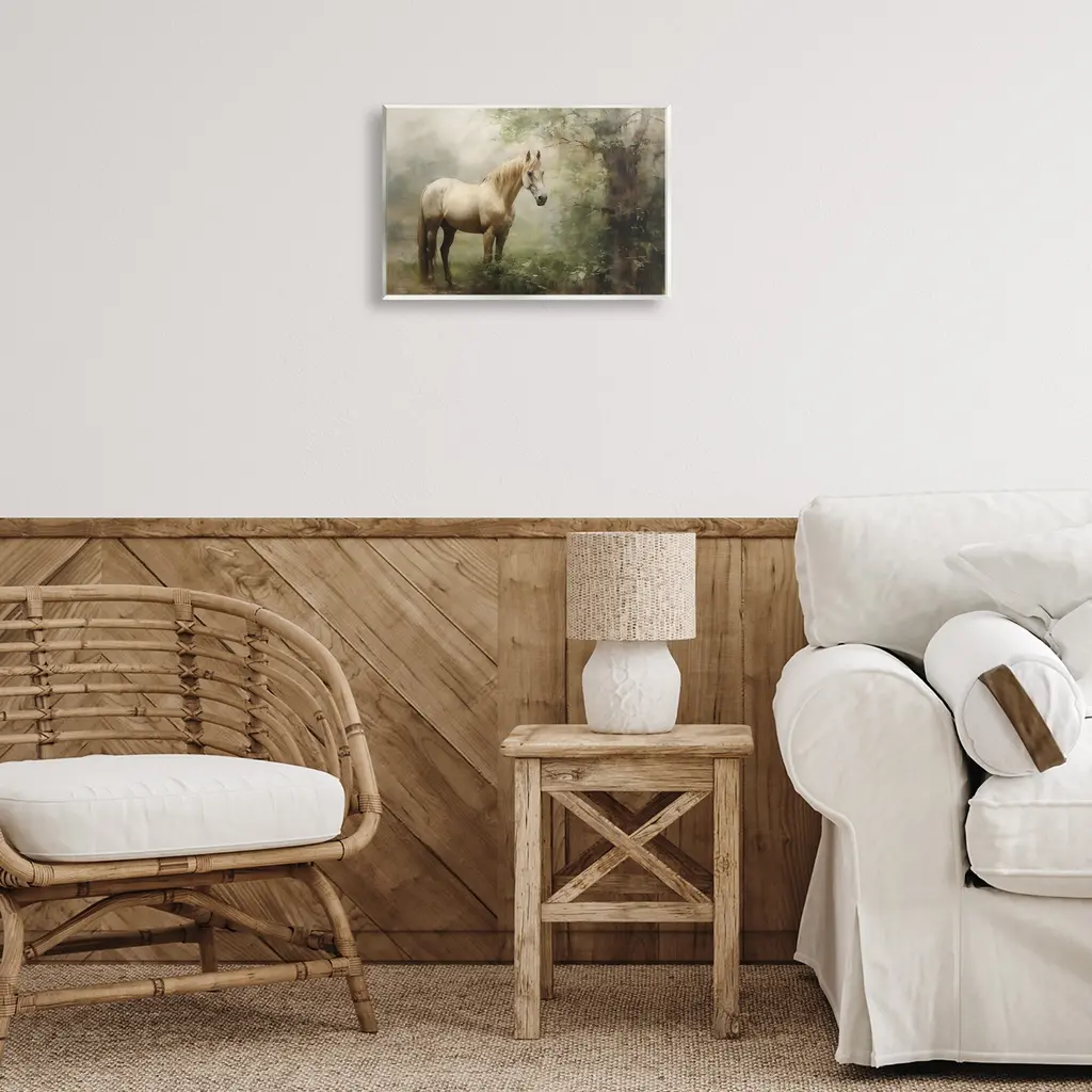 Our wall plaques start as high-quality lithograph prints mounted on durable 0.5-inch thick MDF wood. Each piece is hand finished and comes with a fresh layer of white foil on the sides to give it a crisp, clean look. Plaques arrive ready to hang without installation and come with removable plastic corners to keep them from damage in transit. Stupell Wall Art is made in the USA.Features: Dimensions: 15 x 0.5 x 10 InchesWall Plaque Product Sizes Include 15"x10" and 19"x13". All wall plaque products have a 0.5" Depth. Wall Art is Ready to Hang with Hardware Free Hanging. No installation required. For Easy Set Up Lean or Layer Artwork on Shelf or Against Wall.All of our wall plaques start off as high quality lithograph prints that are then mounted on durable 0.5 inch thick MDF wood. Each piece is hand finished and comes with a fresh layer of foil on the sides to give it a crisp clean look. Made In USA.Artwork Relates To: Animal, Horse, Mammal, Stallion, Nature, Woodland, ForestDesign by Petal Prints Design