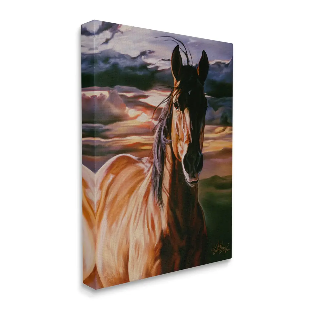 We create our stretched canvas to the highest standards. Using only the highest quality inks and canvas on Mimaki printers, we hand-cut and stretch each piece over a 1.5-inch thick wooden frame for hanging. As a result, the art comes ready to hang on the sturdy ledge with no installation required. Stupell Wall Art is made in the USA.Features: Dimensions: 16 x 1.5 x 20 InchesStretched Canvas Sizes Include Standard: 16 x 1.5 x 20 Large: 20 x 1.5 x 30 X-Large: 30 x 1.5 x 40 Oversized: 36 x 1.5 x 48Wall Art is Ready to Hang with Hardware Free Hanging. No installation required. For Easy Set Up Lean or Layer Artwork on Shelf or Against Wall.Our stretched canvas is created with the highest standards. We use only the highest quality inks and canvas on our in house Mimaki printers, and then hand cut and stretch each piece over a 1.5 inch thick wooden frame for hanging. Made In USA.Artwork Relates To: Animal, Horse, Mammal, Stallion, Colt Horse, Painting, Andalusian HorseDesign by Spirit Horse