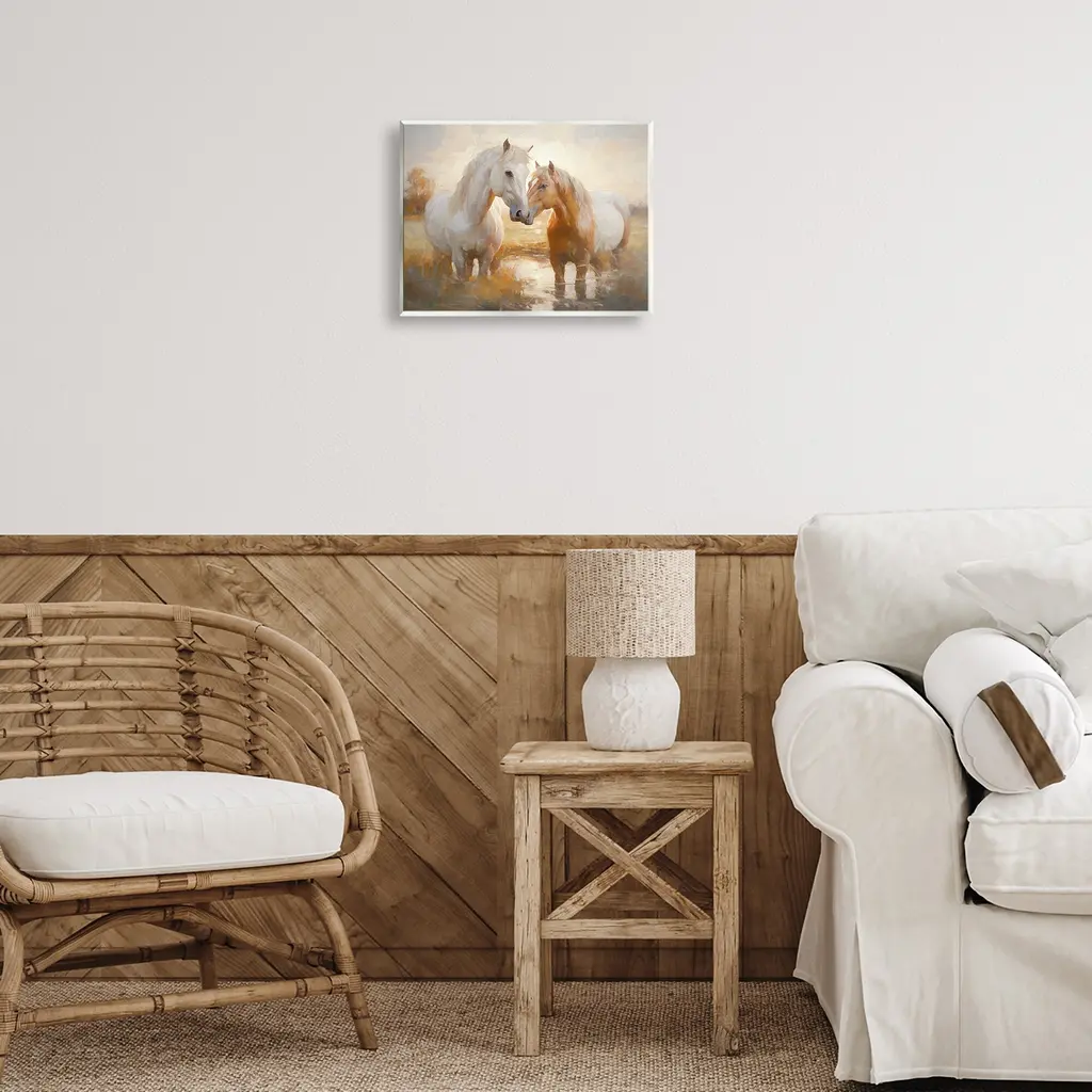 Our wall plaques start as high-quality lithograph prints mounted on durable 0.5-inch thick MDF wood. Each piece is hand finished and comes with a fresh layer of white foil on the sides to give it a crisp, clean look. Plaques arrive ready to hang without installation and come with removable plastic corners to keep them from damage in transit. Stupell Wall Art is made in the USA.Features: Dimensions: 14 x 0.5 x 11 InchesWall Art is Ready to Hang with Hardware Free Hanging. No installation required. For Easy Set Up Lean or Layer Artwork on Shelf or Against Wall.All of our wall plaques start off as high quality lithograph prints that are then mounted on durable 0.5 inch thick MDF wood. Each piece is hand finished and comes with a fresh layer of foil on the sides to give it a crisp clean look. Made In USA.Artwork Relates To: Animal, Colt Horse, Horse, Mammal, Painting, Stallion, Landscape, RiverDesign by Ramona Murdock