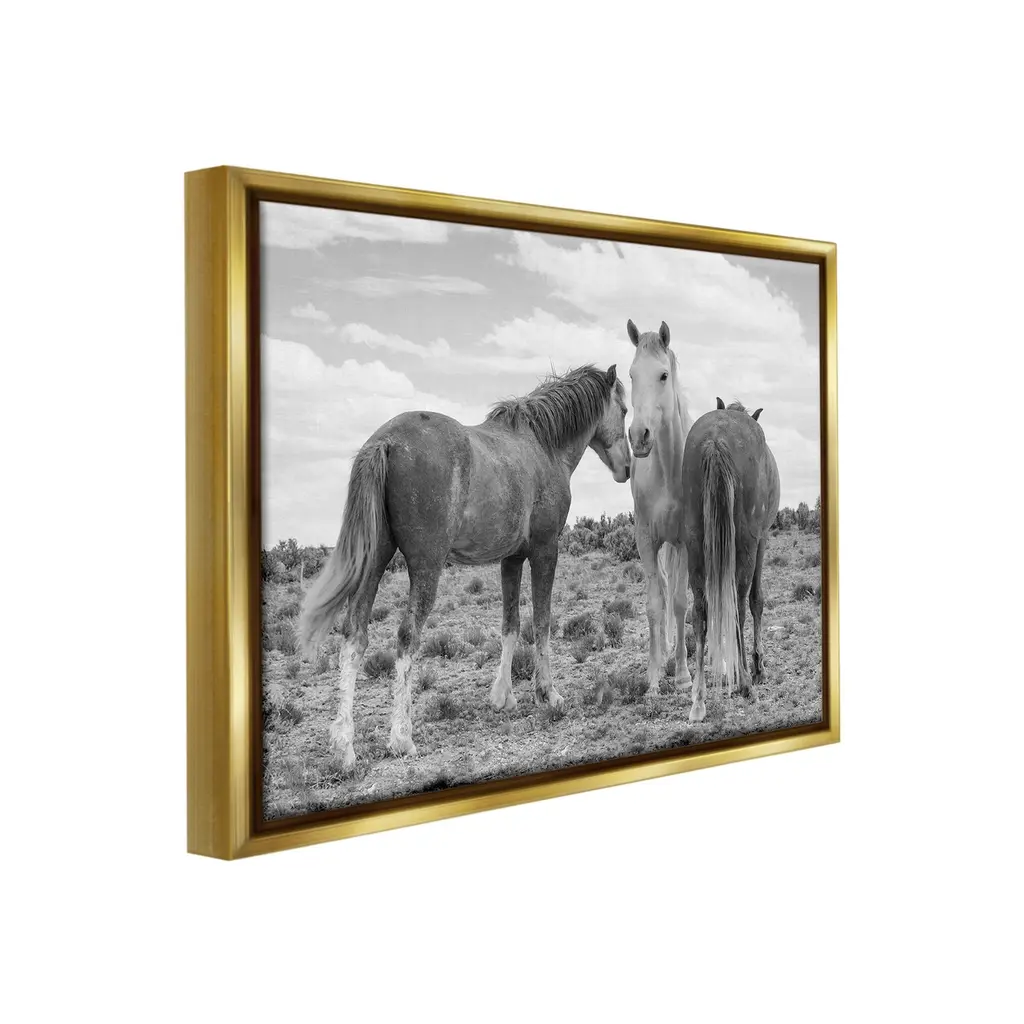 Stupell Horse Trio In Desert Framed Floater Canvas Wall Art Design By Jg Studios - 21 X 17 - Gold