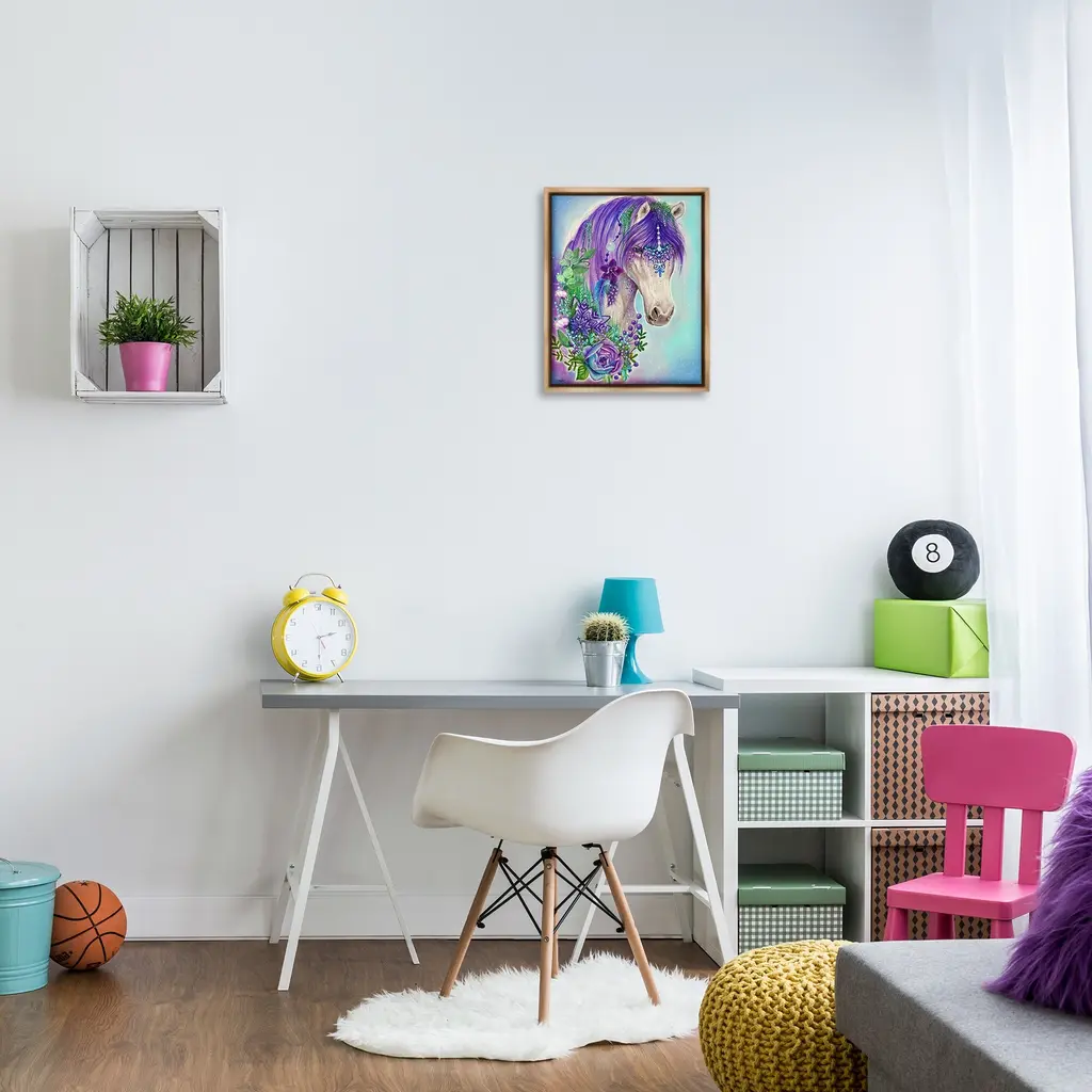 Elevate your home or office to the next level with Stupell Framed Floating Canvas Wall Art. Our premium hand-stretched canvas is mounted securely into a sturdy lightweight frame. The museum-style gap between the wrapped canvas and the box frame gives the illusion of floating artwork. Stupell Wall Art is made in the USA.Features: Dimensions: 17 x 1.7 x 21 Frame, 16 x 1.5 x 20 Canvas ArtFloating Frame Canvas Products are available in sizes 17"x21" and 25"x31". All Floating Frame Canvas Products have a 1.7" Depth.Wall Art is Ready to Hang with Hardware Free Hanging. No Installation required. For Easy Set Up Lean or Layer Artwork on Shelf or Against Wall. Artwork is Permently Fixed into the Frame.Our elevated 1.7" Thick Floating Frame is the perfect complement to our canvas style Wall Art. We use only the highest quality inks in house with industry leading printing solutions. Canvas is hand stretched over a durable wood foundation and then mounted securly into a Modern Box Frame. Made in the USA.Artwork Relates To: Flower, Plant, Animal, Mammal, Horse, Floral, Botanical, PurpleDesign by Sheena Pike
