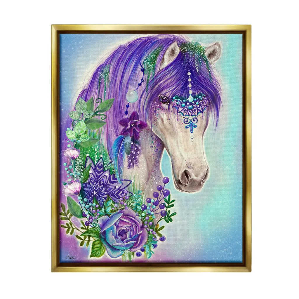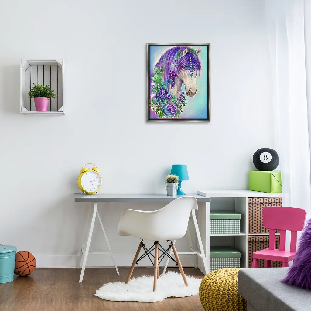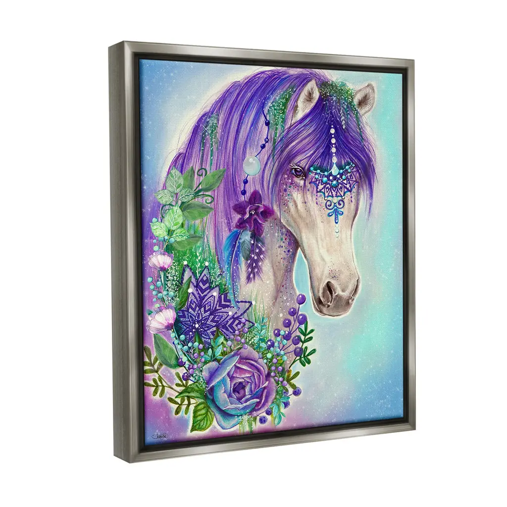 Elevate your home or office to the next level with Stupell Framed Floating Canvas Wall Art. Our premium hand-stretched canvas is mounted securely into a sturdy lightweight frame. The museum-style gap between the wrapped canvas and the box frame gives the illusion of floating artwork. Stupell Wall Art is made in the USA.Features: Dimensions: 17 x 1.7 x 21 Frame, 16 x 1.5 x 20 Canvas ArtFloating Frame Canvas Products are available in sizes 17"x21" and 25"x31". All Floating Frame Canvas Products have a 1.7" Depth.Wall Art is Ready to Hang with Hardware Free Hanging. No Installation required. For Easy Set Up Lean or Layer Artwork on Shelf or Against Wall. Artwork is Permently Fixed into the Frame.Our elevated 1.7" Thick Floating Frame is the perfect complement to our canvas style Wall Art. We use only the highest quality inks in house with industry leading printing solutions. Canvas is hand stretched over a durable wood foundation and then mounted securly into a Modern Box Frame. Made in the USA.Artwork Relates To: Flower, Plant, Animal, Mammal, Horse, Floral, Botanical, PurpleDesign by Sheena Pike