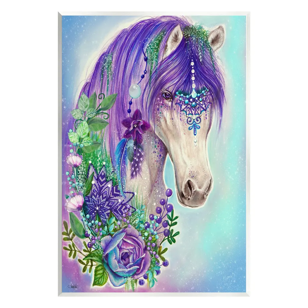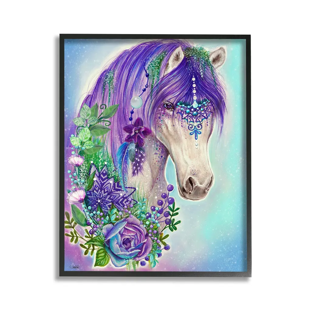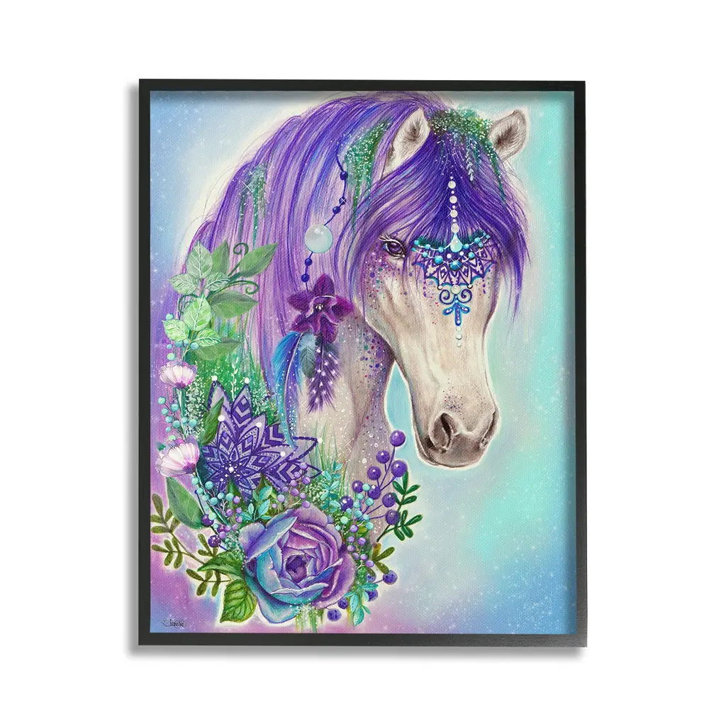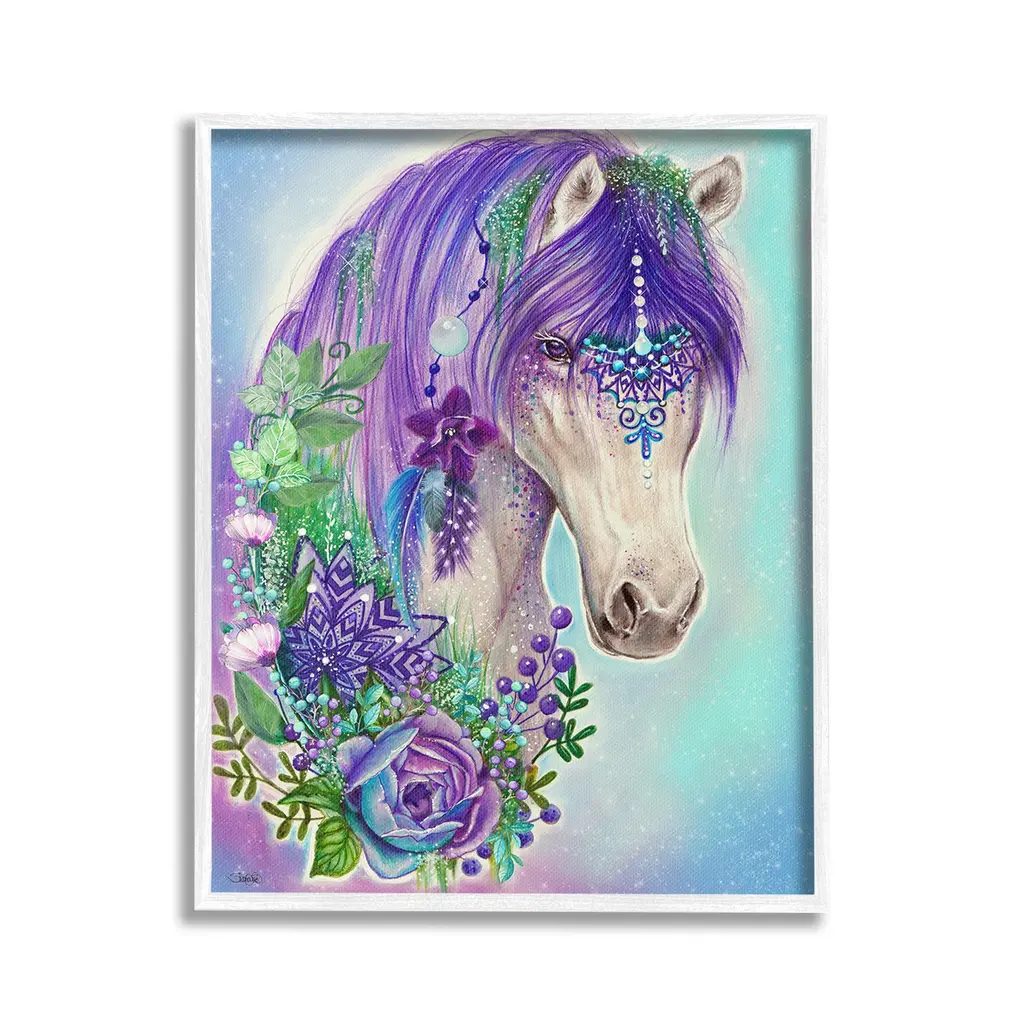 Elevate your home or office to the next level with Stupell Framed Floating Canvas Wall Art. Our premium hand-stretched canvas is mounted securely into a sturdy lightweight frame. The museum-style gap between the wrapped canvas and the box frame gives the illusion of floating artwork. Stupell Wall Art is made in the USA.Features: Dimensions: 17 x 1.7 x 21 Frame, 16 x 1.5 x 20 Canvas ArtFloating Frame Canvas Products are available in sizes 17"x21" and 25"x31". All Floating Frame Canvas Products have a 1.7" Depth.Wall Art is Ready to Hang with Hardware Free Hanging. No Installation required. For Easy Set Up Lean or Layer Artwork on Shelf or Against Wall. Artwork is Permently Fixed into the Frame.Our elevated 1.7" Thick Floating Frame is the perfect complement to our canvas style Wall Art. We use only the highest quality inks in house with industry leading printing solutions. Canvas is hand stretched over a durable wood foundation and then mounted securly into a Modern Box Frame. Made in the USA.Artwork Relates To: Flower, Plant, Animal, Mammal, Horse, Floral, Botanical, PurpleDesign by Sheena Pike