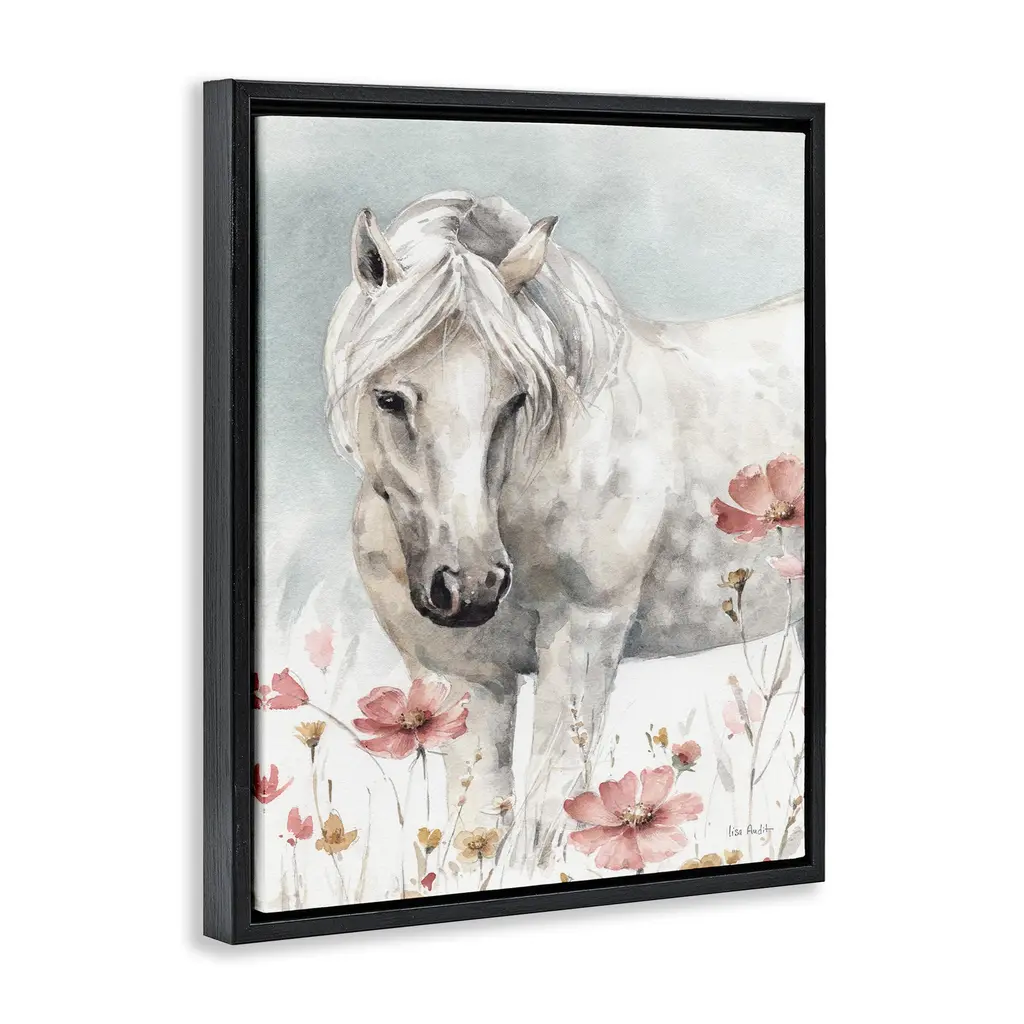 Stupell Horse With Pink Flowers Framed Floater Canvas Wall Art Design By Lisa Audit - 25 X 31 - Black