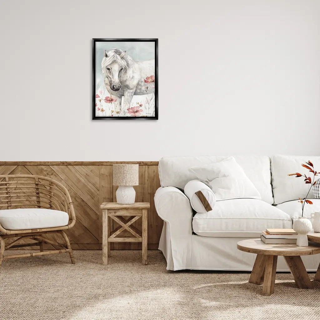 Elevate your home or office to the next level with Stupell Framed Floating Canvas Wall Art. Our premium hand-stretched canvas is mounted securely into a sturdy lightweight frame. The museum-style gap between the wrapped canvas and the box frame gives the illusion of floating artwork. Stupell Wall Art is made in the USA.Features: Dimensions: 17 x 1.7 x 21 Frame, 16 x 1.5 x 20 Canvas ArtFloating Frame Canvas Products are available in sizes 17"x21" and 25"x31". All Floating Frame Canvas Products have a 1.7" Depth.Wall Art is Ready to Hang with Hardware Free Hanging. No Installation required. For Easy Set Up Lean or Layer Artwork on Shelf or Against Wall. Artwork is Permently Fixed into the Frame.Our elevated 1.7" Thick Floating Frame is the perfect complement to our canvas style Wall Art. We use only the highest quality inks in house with industry leading printing solutions. Canvas is hand stretched over a durable wood foundation and then mounted securly into a Modern Box Frame. Made in the USA.Artwork Relates To: Animal, Horse, Shabby Chic, Flower, Floral, Poppy, Neutral, Farm, Country, CottageDesign by Lisa Audit