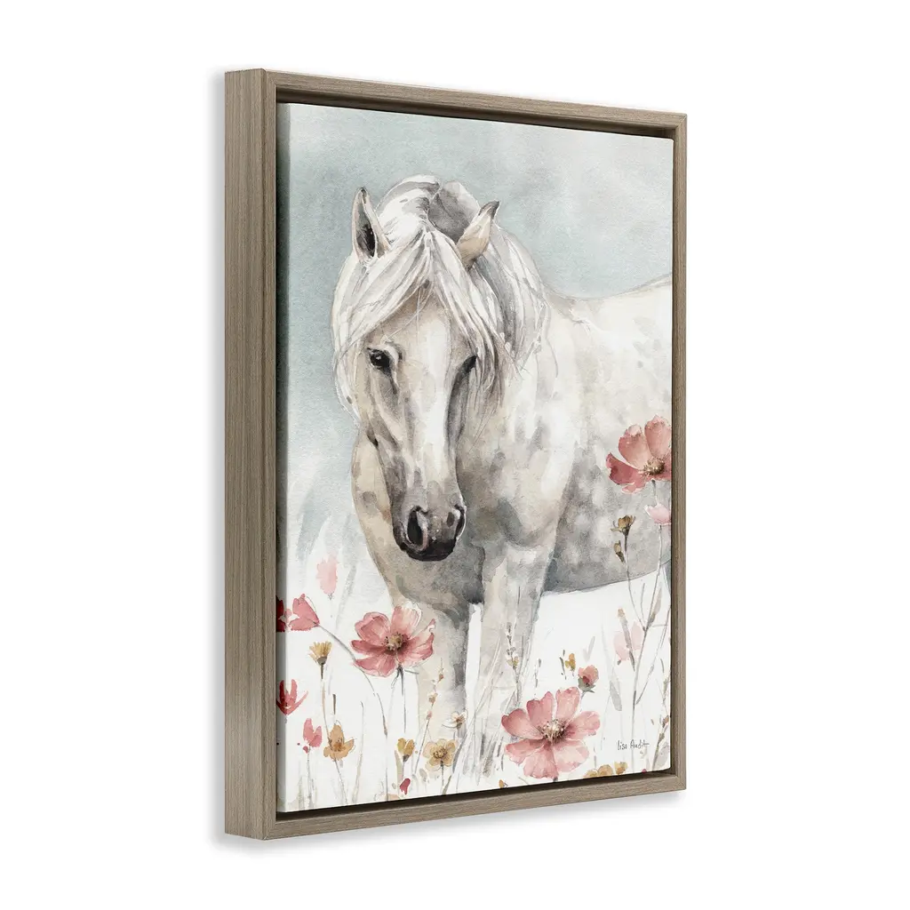 Elevate your home or office to the next level with Stupell Framed Floating Canvas Wall Art. Our premium hand-stretched canvas is mounted securely into a sturdy lightweight frame. The museum-style gap between the wrapped canvas and the box frame gives the illusion of floating artwork. Stupell Wall Art is made in the USA.Features: Dimensions: 17 x 1.7 x 21 Frame, 16 x 1.5 x 20 Canvas ArtFloating Frame Canvas Products are available in sizes 17"x21" and 25"x31". All Floating Frame Canvas Products have a 1.7" Depth.Wall Art is Ready to Hang with Hardware Free Hanging. No Installation required. For Easy Set Up Lean or Layer Artwork on Shelf or Against Wall. Artwork is Permently Fixed into the Frame.Our elevated 1.7" Thick Floating Frame is the perfect complement to our canvas style Wall Art. We use only the highest quality inks in house with industry leading printing solutions. Canvas is hand stretched over a durable wood foundation and then mounted securly into a Modern Box Frame. Made in the USA.Artwork Relates To: Animal, Horse, Shabby Chic, Flower, Floral, Poppy, Neutral, Farm, Country, CottageDesign by Lisa Audit