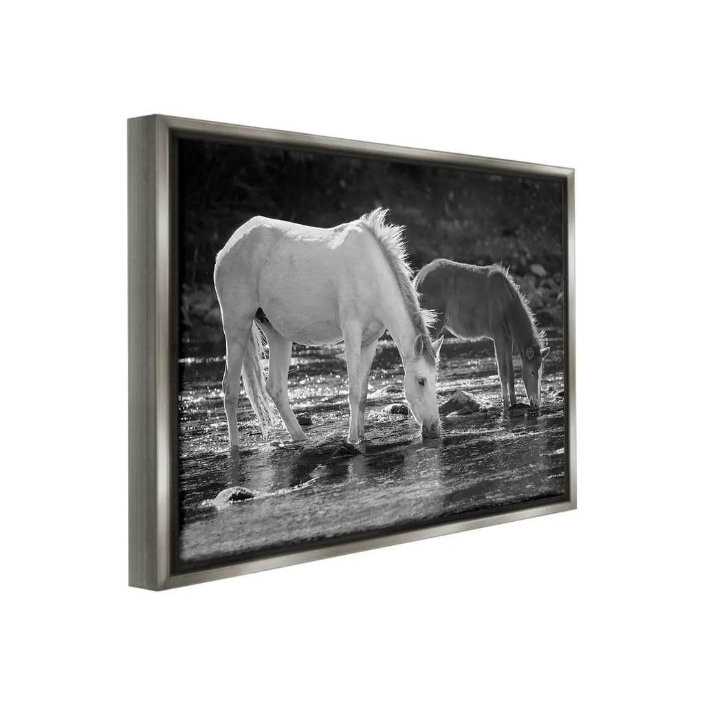 Stupell Horses Drinking At Stream Framed Floater Canvas Wall Art Design By Jg Studios - 21 X 17 - Grey