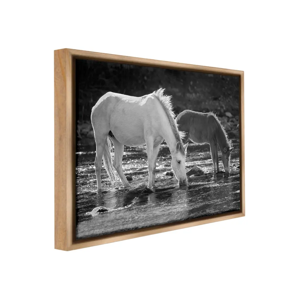 Elevate your home or office to the next level with Stupell Framed Floating Canvas Wall Art. Our premium hand-stretched canvas is mounted securely into a sturdy lightweight frame. The museum-style gap between the wrapped canvas and the box frame gives the illusion of floating artwork. Stupell Wall Art is made in the USA.Features: Dimensions: 21 x 1.7 x 17 Frame, 20 x 1.5 x 16 Canvas ArtFloating Frame Canvas Products are available in sizes 21"x17" and 31"x25". All Floating Frame Canvas Products have a 1.7" Depth.Wall Art is Ready to Hang with Hardware Free Hanging. No Installation required. For Easy Set Up Lean or Layer Artwork on Shelf or Against Wall. Artwork is Permently Fixed into the Frame.Our elevated 1.7" Thick Floating Frame is the perfect complement to our canvas style Wall Art. We use only the highest quality inks in house with industry leading printing solutions. Canvas is hand stretched over a durable wood foundation and then mounted securly into a Modern Box Frame. Made in the USA.Artwork Relates To: Andalusian Horse, Animal, Horse, Mammal, Stallion, Farm, Country, Monochrome, Landscape, WaterDesign by JG Studios