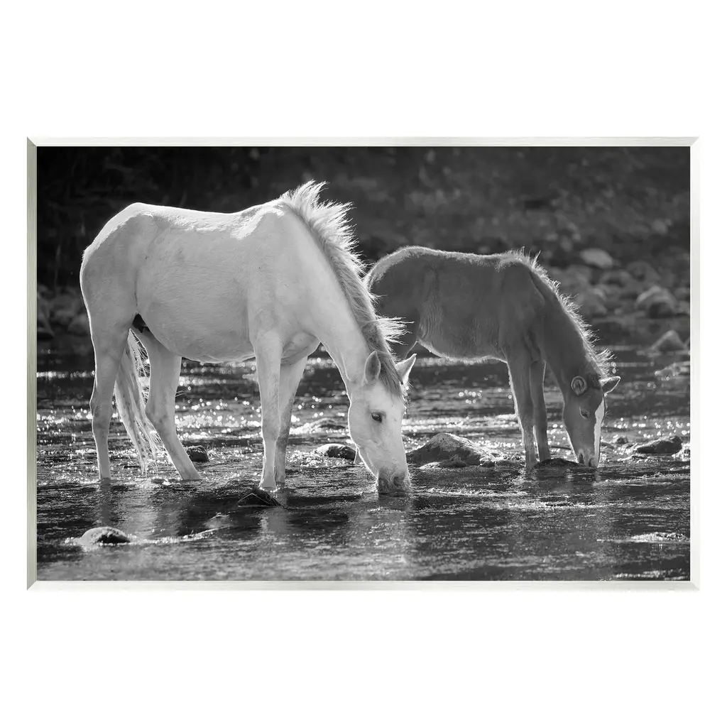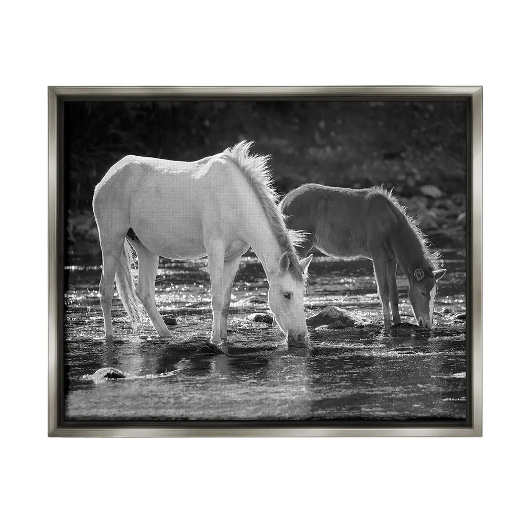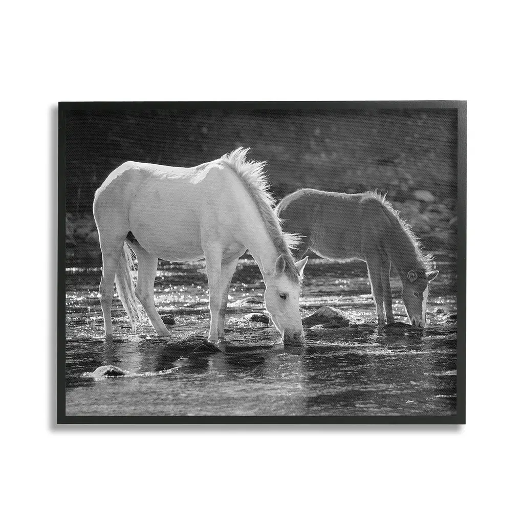 Add dimension to any room with our textured Framed Giclee Artwork. Our framed artwork is securely mounted into a 1.5-inch thick wood grain frame and ready to hang. Frames are available in three alluring styles: black, gray farmhouse and white. In addition, you should check out our oversized options if you want a statement piece. Stupell Wall Art is made in the USA.Features: Dimensions: 14 x 1.5 x 11 FramedFramed Giclee Products are available in the sizes 14"x11", 20"x16" or 30"x24". All Framed Giclee Products have a 1.5" Depth. Wall Art is Ready to Hang with Hardware Free Hanging. No installation required. For Easy Set Up Lean or Layer Artwork on Shelf or Against Wall.Our giclée prints are carefully mounted on a durable MDF backing, and then perfectly finished in a 1.5 inch thick woodgrain frame. Mounted frame colors include black, gray farmhouse and white. Made In USA.Artwork Relates To: Andalusian Horse, Animal, Horse, Mammal, Stallion, Farm, Country, Monochrome, Landscape, WaterDesign by JG Studios