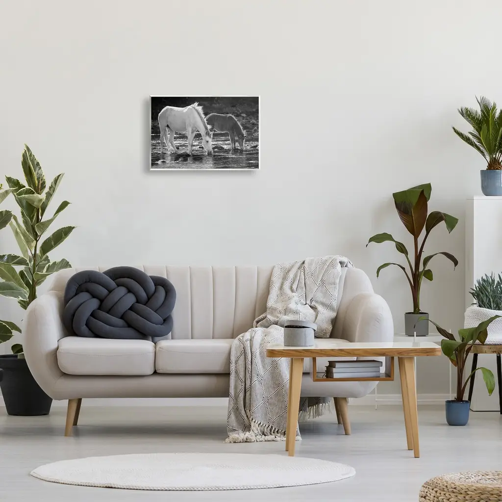 Our wall plaques start as high-quality lithograph prints mounted on durable 0.5-inch thick MDF wood. Each piece is hand finished and comes with a fresh layer of white foil on the sides to give it a crisp, clean look. Plaques arrive ready to hang without installation and come with removable plastic corners to keep them from damage in transit. Stupell Wall Art is made in the USA.Features: Dimensions: 15 x 0.5 x 10 InchesWall Plaque Product Sizes Include 15"x10" and 19"x13". All wall plaque products have a 0.5" Depth. Wall Art is Ready to Hang with Hardware Free Hanging. No installation required. For Easy Set Up Lean or Layer Artwork on Shelf or Against Wall.All of our wall plaques start off as high quality lithograph prints that are then mounted on durable 0.5 inch thick MDF wood. Each piece is hand finished and comes with a fresh layer of foil on the sides to give it a crisp clean look. Made In USA.Artwork Relates To: Andalusian Horse, Animal, Horse, Mammal, Stallion, Farm, Country, Monochrome, Landscape, WaterDesign by JG Studios