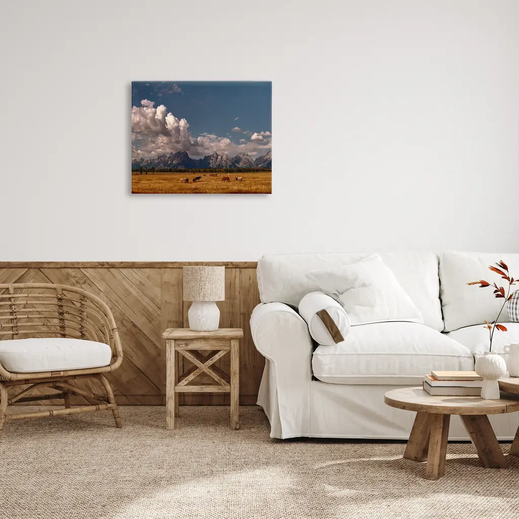 We create our stretched canvas to the highest standards. Using only the highest quality inks and canvas on Mimaki printers, we hand-cut and stretch each piece over a 1.5-inch thick wooden frame for hanging. As a result, the art comes ready to hang on the sturdy ledge with no installation required. Stupell Wall Art is made in the USA.Features: Dimensions: 20 x 1.5 x 16 InchesStretched Canvas Sizes Include Standard: 20 x 1.5 x 16 Large: 30 x 1.5 x 20 X-Large: 40 x 1.5 x 30 Oversized: 48 x 1.5 x 36Wall Art is Ready to Hang with Hardware Free Hanging. No installation required. For Easy Set Up Lean or Layer Artwork on Shelf or Against Wall.Our stretched canvas is created with the highest standards. We use only the highest quality inks and canvas on our in house Mimaki printers, and then hand cut and stretch each piece over a 1.5 inch thick wooden frame for hanging. Made In USA.Artwork Relates To: Landscape, Nature, Scenery, Panoramic, Sky, Field, Grassland, Weather, Cloud, Animal, Mammal, Horse, Countryside, Farm, Pasture, Rural, MountainDesign by Lena Owens