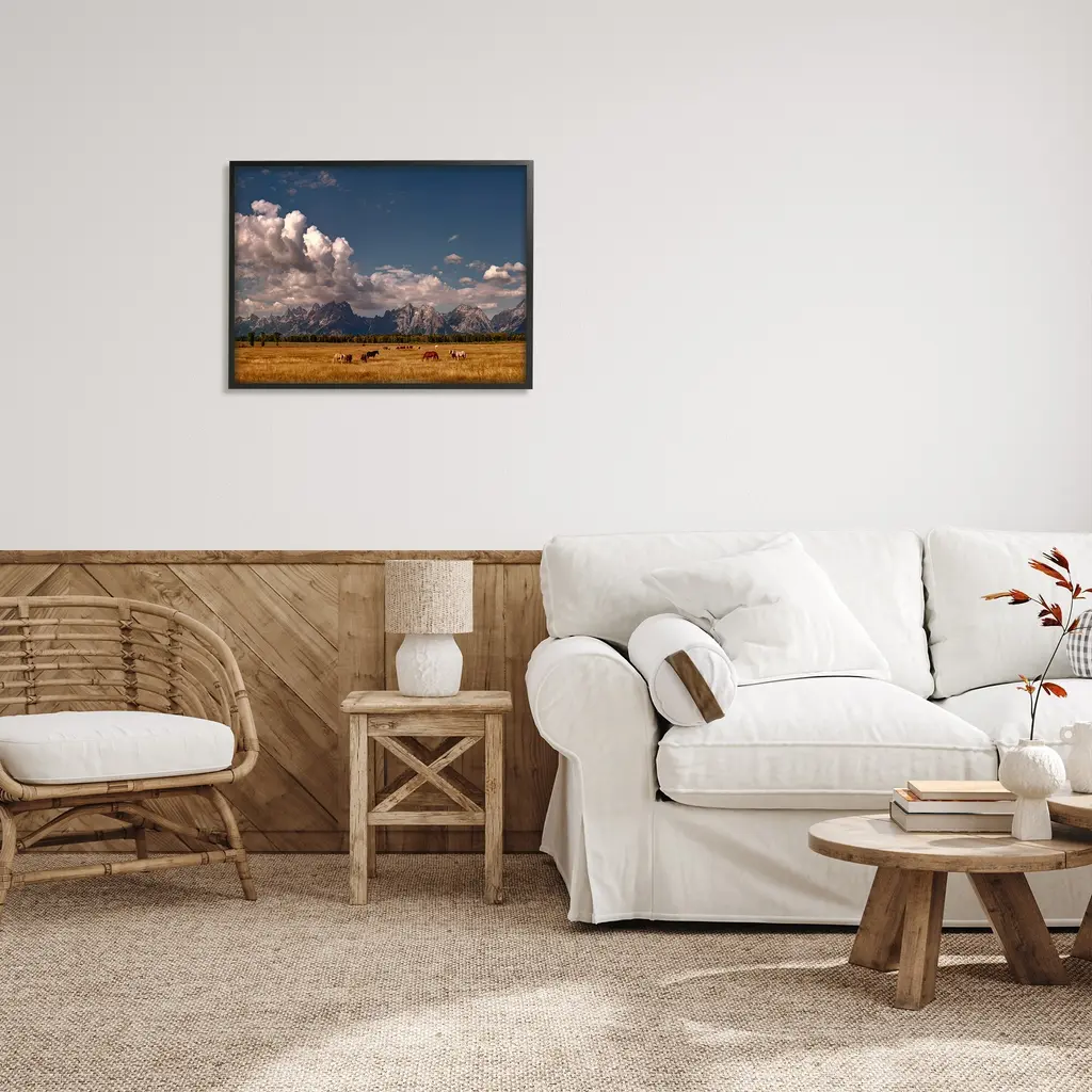 Add dimension to any room with our textured Framed Giclee Artwork. Our framed artwork is securely mounted into a 1.5-inch thick wood grain frame and ready to hang. Frames are available in three alluring styles: black, gray farmhouse and white. In addition, you should check out our oversized options if you want a statement piece. Stupell Wall Art is made in the USA.Features: Dimensions: 14 x 1.5 x 11 FramedFramed Giclee Sizes Include Standard: 14 x 1.5 x 11 Large: 20 x 1.5 x 16 Oversized: 30 x 1.5 x 24Wall Art is Ready to Hang with Hardware Free Hanging. No installation required. For Easy Set Up Lean or Layer Artwork on Shelf or Against Wall.Our giclée prints are carefully mounted on a durable MDF backing, and then perfectly finished in a 1.5 inch thick woodgrain frame. Mounted frame colors include black, gray farmhouse and white. Made In USA.Artwork Relates To: Landscape, Nature, Scenery, Panoramic, Sky, Field, Grassland, Weather, Cloud, Animal, Mammal, Horse, Countryside, Farm, Pasture, Rural, MountainDesign by Lena Owens