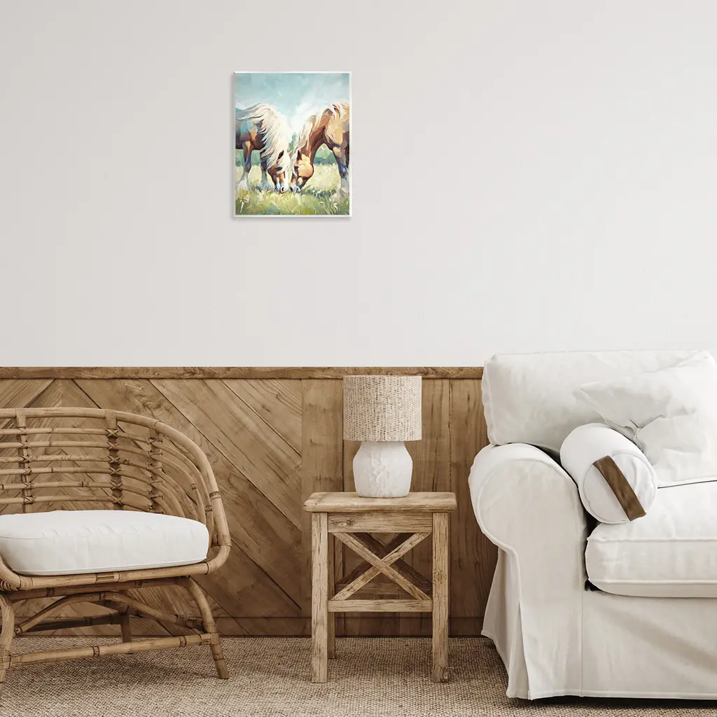 Our wall plaques start as high-quality lithograph prints mounted on durable 0.5-inch thick MDF wood. Each piece is hand finished and comes with a fresh layer of white foil on the sides to give it a crisp, clean look. Plaques arrive ready to hang without installation and come with removable plastic corners to keep them from damage in transit. Stupell Wall Art is made in the USA.Features: Dimensions: 11 x 0.5 x 14 InchesWall Art is Ready to Hang with Hardware Free Hanging. No installation required. For Easy Set Up Lean or Layer Artwork on Shelf or Against Wall.All of our wall plaques start off as high quality lithograph prints that are then mounted on durable 0.5 inch thick MDF wood. Each piece is hand finished and comes with a fresh layer of foil on the sides to give it a crisp clean look. Made In USA.Artwork Relates To: Animal, Colt Horse, Horse, Mammal, Painting, Stallion, Landscape, MeadowDesign by Ramona Murdock