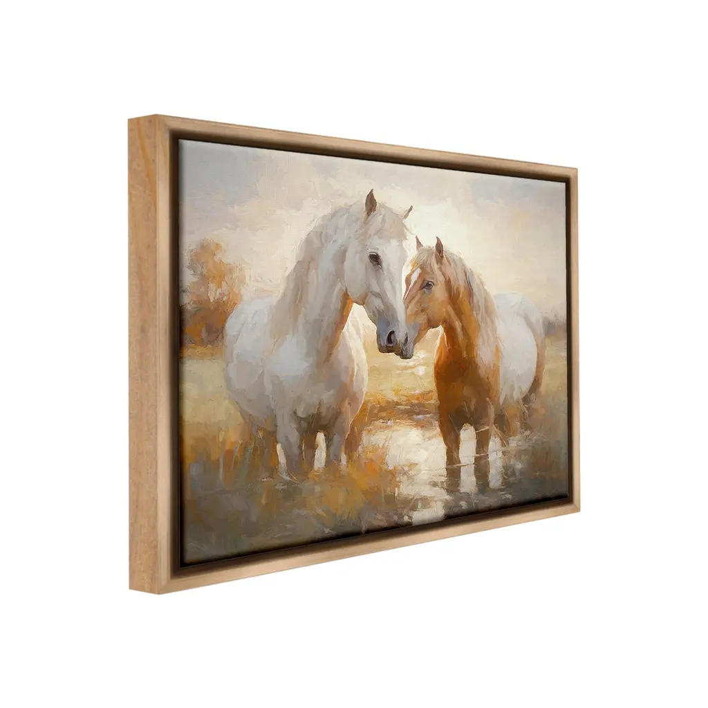 Elevate your home or office to the next level with Stupell Framed Floating Canvas Wall Art. Our premium hand-stretched canvas is mounted securely into a sturdy lightweight frame. The museum-style gap between the wrapped canvas and the box frame gives the illusion of floating artwork. Stupell Wall Art is made in the USA.Features: Dimensions: 21 x 1.7 x 17 Frame, 20 x 1.5 x 16 Canvas ArtFloating Frame Canvas Products are available in sizes 21"x17" and 31"x25". All Floating Frame Canvas Products have a 1.7" Depth.Wall Art is Ready to Hang with Hardware Free Hanging. No Installation required. For Easy Set Up Lean or Layer Artwork on Shelf or Against Wall. Artwork is Permently Fixed into the Frame.Our elevated 1.7" Thick Floating Frame is the perfect complement to our canvas style Wall Art. We use only the highest quality inks in house with industry leading printing solutions. Canvas is hand stretched over a durable wood foundation and then mounted securly into a Modern Box Frame. Made in the USA.Artwork Relates To: Animal, Mammal, Horse, Stallion, Painting, Farm, Country, Southwestern, Landscape, RiverDesign by Ramona Murdock