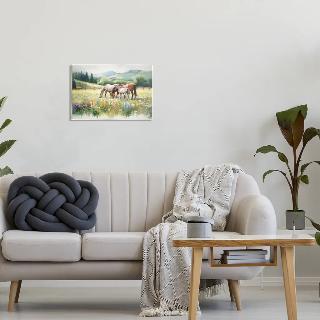 Our wall plaques start as high-quality lithograph prints mounted on durable 0.5-inch thick MDF wood. Each piece is hand finished and comes with a fresh layer of white foil on the sides to give it a crisp, clean look. Plaques arrive ready to hang without installation and come with removable plastic corners to keep them from damage in transit. Wall Art is made in the USA.Features: Dimensions: 15 x 0.5 x 10 InchesWall Plaque Sizes Include Standard: 15 x 0.5 x 10 Oversized: 19 x 0.5 x 13Wall Art is Ready to Hang with Hardware Free Hanging. No installation required. For Easy Set Up Lean or Layer Artwork on Shelf or Against Wall.All of our wall plaques start off as high quality lithograph prints that are then mounted on durable 0.5 inch thick MDF wood. Each piece is hand finished and comes with a fresh layer of foil on the sides to give it a crisp clean look. Made In USA.Artwork Relates To: Field, Grassland, Nature, Animal, Horse, Mammal, Countryside, Colt Horse, Farm, Pasture, Rural, Grazing, Foal, Meadow, PaintingDesign by Ramona Murdock