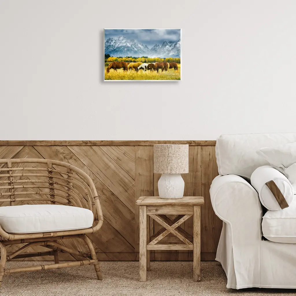 Our wall plaques start as high-quality lithograph prints mounted on durable 0.5-inch thick MDF wood. Each piece is hand finished and comes with a fresh layer of white foil on the sides to give it a crisp, clean look. Plaques arrive ready to hang without installation and come with removable plastic corners to keep them from damage in transit. Stupell Wall Art is made in the USA.Features: Dimensions: 15 x 0.5 x 10 InchesWall Plaque Product Sizes Include 15"x10" and 19"x13". All wall plaque products have a 0.5" Depth. Wall Art is Ready to Hang with Hardware Free Hanging. No installation required. For Easy Set Up Lean or Layer Artwork on Shelf or Against Wall.All of our wall plaques start off as high quality lithograph prints that are then mounted on durable 0.5 inch thick MDF wood. Each piece is hand finished and comes with a fresh layer of foil on the sides to give it a crisp clean look. Made In USA.Artwork Relates To: Field, Grassland, Nature, Countryside, Farm, Pasture, Rural, Grazing, Landscape, Ranch, Animal, Horse, MammalDesign by Dennis Frates