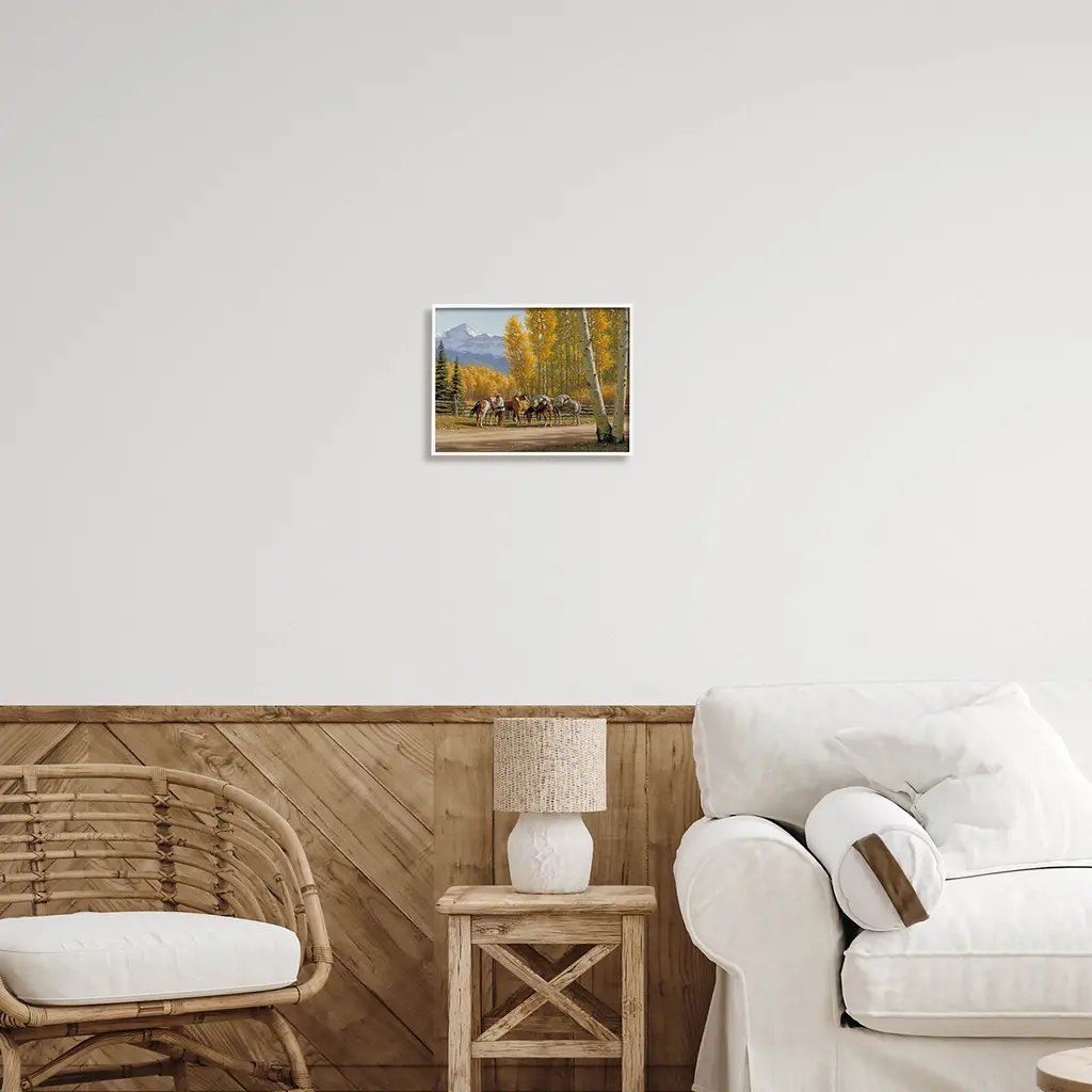 Our Framed Giclee Wall Art adds a touch of class to any space in your home or office. Frames are available in three alluring styles: black, gray farmhouse and white. Our textured artwork will add more depth and dimension to any space. Each piece is mounted with a 1.5 inch thick wood grain frame that is ready to hang! Looking for a statement piece? We have oversized artwork available.Features: Dimensions: 14 x 1.5 x 11 FramedFramed Giclee Sizes Include Standard: 14 x 1.5 x 11 Large: 20 x 1.5 x 16 Oversized: 30 x 1.5 x 24Wall Art is Ready to Hang - No Installation or Hardware Needed. For Easy Set Up Lean or Layer Artwork on Shelf or Against Wall.Our giclée prints are carefully mounted on a durable MDF backing, and then perfectly finished in a 1.5 inch thick woodgrain frame. Mounted frame colors include black, gray farmhouse and white. Made In USA.Artwork Relates To: Tree, Plant, Woodland, Outdoors, Nature, Land, Horse, Mammal, Animal, Helmet, Countryside, Birch, FarmDesign by Jimmy Dyer