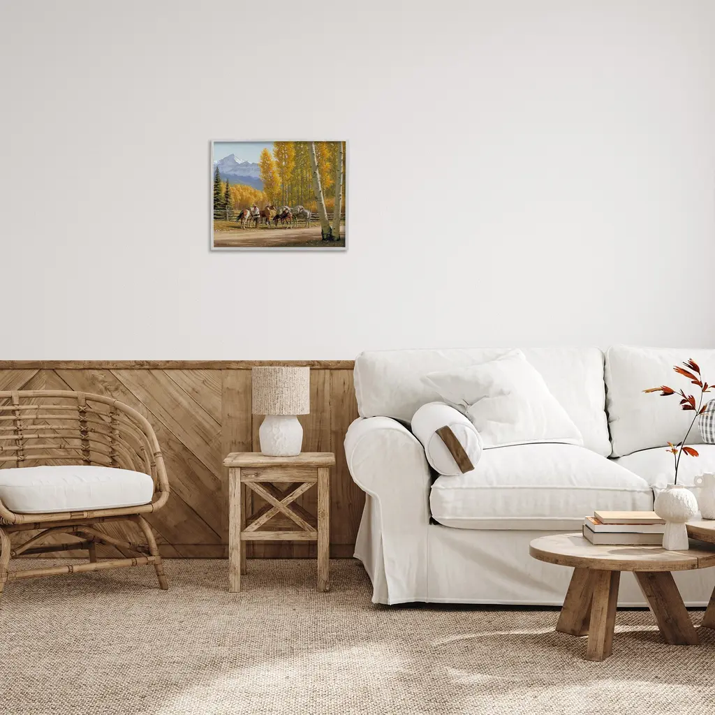 Add dimension to any room with our textured Framed Giclee Artwork. Our framed artwork is securely mounted into a 1.5-inch thick wood grain frame and ready to hang. Frames are available in three alluring styles: black, gray farmhouse and white. In addition, you should check out our oversized options if you want a statement piece. Stupell Wall Art is made in the USA.Features: Dimensions: 14 x 1.5 x 11 FramedFramed Giclee Products are available in the sizes 14"x11", 20"x16" or 30"x24". All Framed Giclee Products have a 1.5" Depth. Wall Art is Ready to Hang with Hardware Free Hanging. No installation required. For Easy Set Up Lean or Layer Artwork on Shelf or Against Wall.Our giclée prints are carefully mounted on a durable MDF backing, and then perfectly finished in a 1.5 inch thick woodgrain frame. Mounted frame colors include black, gray farmhouse and white. Made In USA.Artwork Relates To: Tree, Animal, Horse, Mammal, Nature, Person, Cowboy, Southwestern, Country, Traditional, Birch, Mountain, Fall, FoliageDesign by Jimmy Dyer