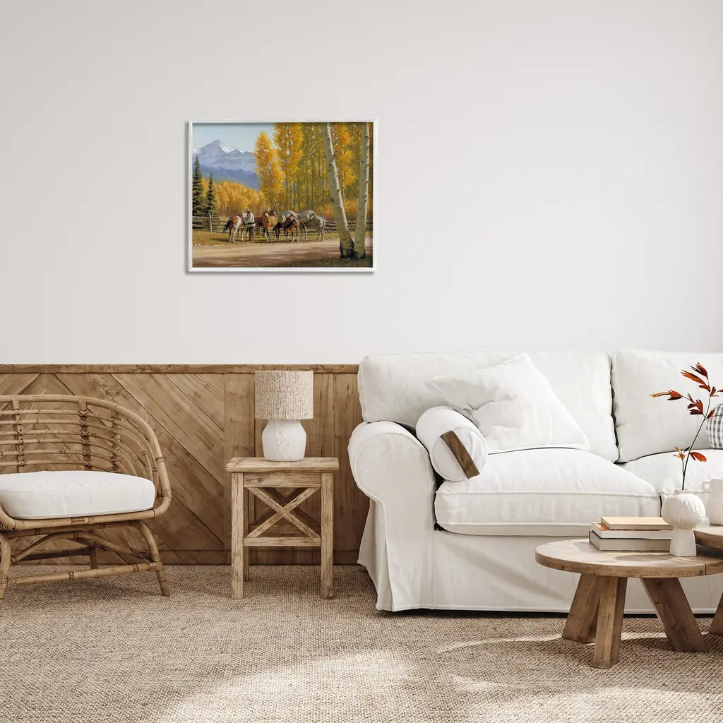 Add dimension to any room with our textured Framed Giclee Artwork. Our framed artwork is securely mounted into a 1.5-inch thick wood grain frame and ready to hang. Frames are available in three alluring styles: black, gray farmhouse and white. In addition, you should check out our oversized options if you want a statement piece. Stupell Wall Art is made in the USA.Features: Dimensions: 14 x 1.5 x 11 FramedFramed Giclee Products are available in the sizes 14"x11", 20"x16" or 30"x24". All Framed Giclee Products have a 1.5" Depth. Wall Art is Ready to Hang with Hardware Free Hanging. No installation required. For Easy Set Up Lean or Layer Artwork on Shelf or Against Wall.Our giclée prints are carefully mounted on a durable MDF backing, and then perfectly finished in a 1.5 inch thick woodgrain frame. Mounted frame colors include black, gray farmhouse and white. Made In USA.Artwork Relates To: Tree, Animal, Horse, Mammal, Nature, Person, Cowboy, Southwestern, Country, Traditional, Birch, Mountain, Fall, FoliageDesign by Jimmy Dyer