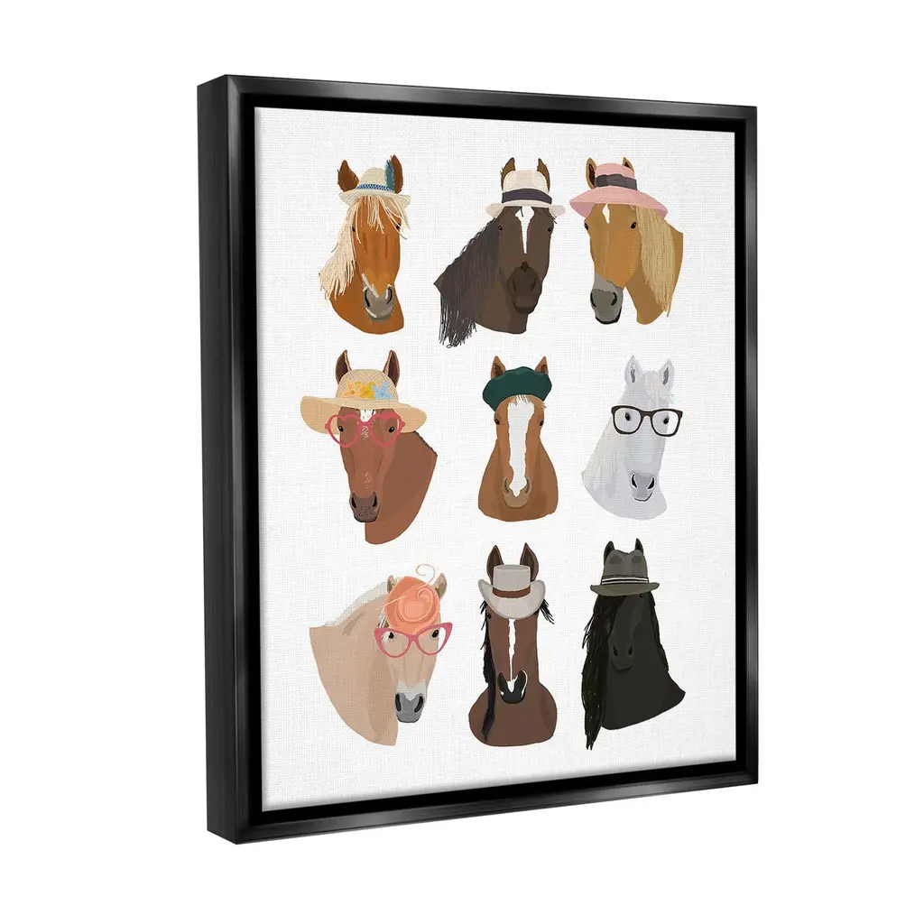 Stupell Horses With Various Hats Framed Floater Canvas Wall Art Design By Hanna Melin - 25 X 31 - Black