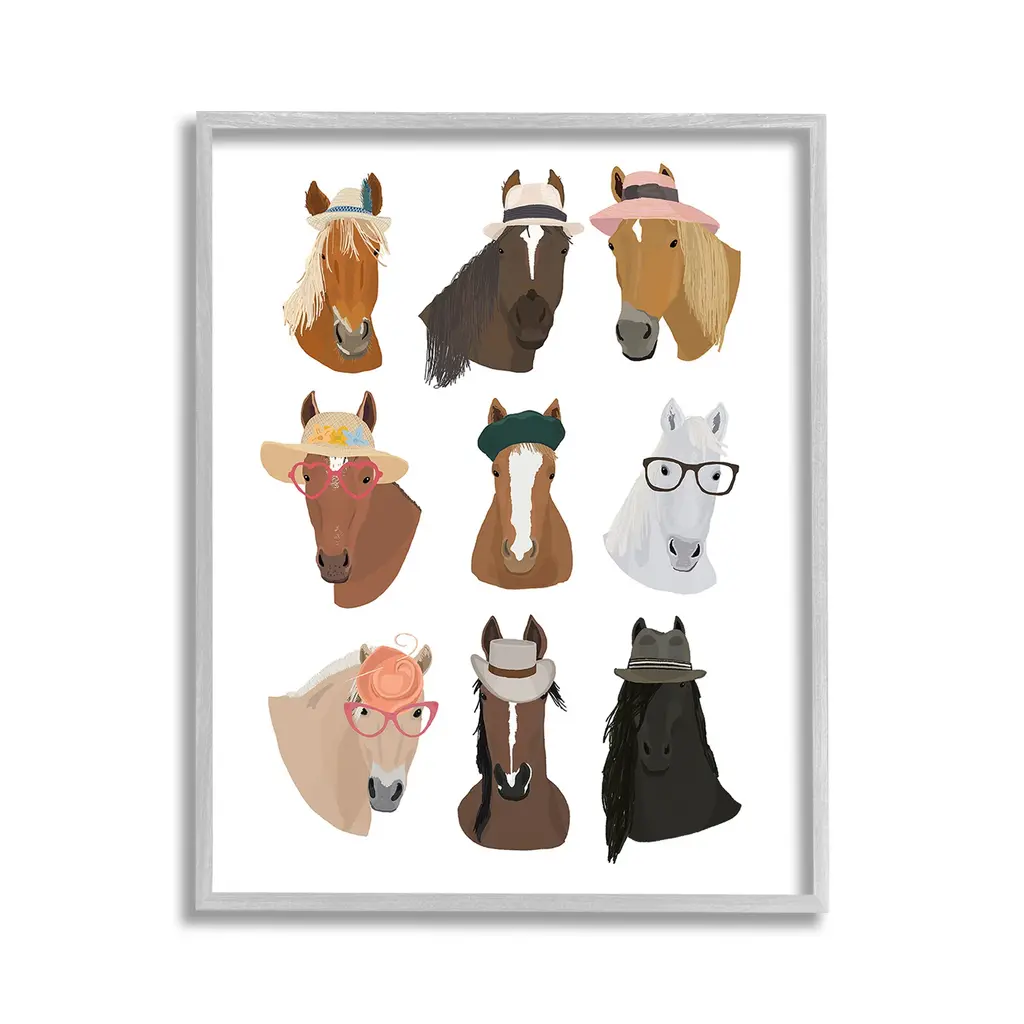 Stupell Horses With Various Hats Framed Giclee Art Design By Hanna Melin - 16 X 20 - Grey