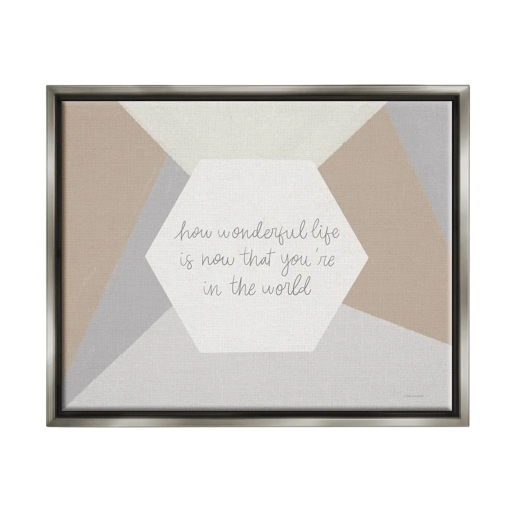 Elevate your home or office to the next level with Stupell Framed Floating Canvas Wall Art. Our premium hand stretched canvas is mounted securely into a sturdy lightweight frame. The museum style gap between wrapped canvas and box frame gives the illusion of floating artwork.Features:Dimensions: 21 x 1.7 x 17 Frame, 20 x 1.5 x 16 Canvas ArtFloating Frame Sizes IncludeStandard: 21 x 1.7 x 17Oversized: 31 x 1.7 x 25Wall Art is Ready to Hang - No Installation or Hardware Needed. For Easy Set Up Lean or Layer Artwork on Shelf or Against Wall.Our elevated 1.7" Thick Floating Frame is the perfect complement to our canvas style Wall Art. We use only the highest quality inks in house with industry leading printing solutions. Canvas is hand stretched over a durable wood foundation and then mounted securely into a Modern Box Frame. Made in the USA.Artwork Relates To: Geometric, Beige, Neutral Tones, Phrase, TypographyDesign by Lady Louise Designs
