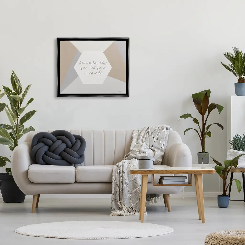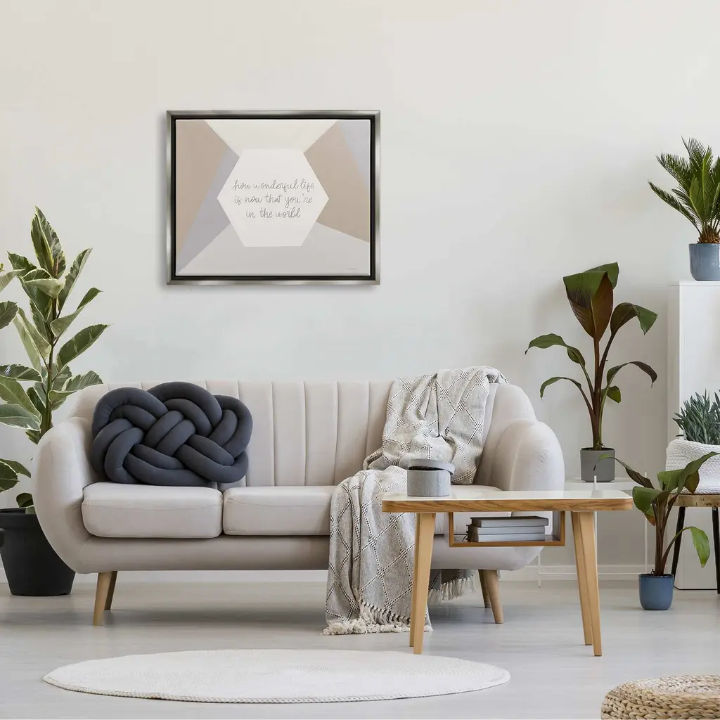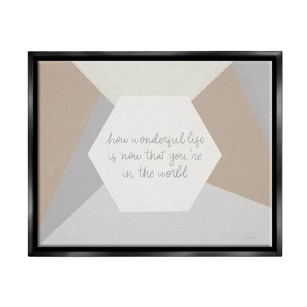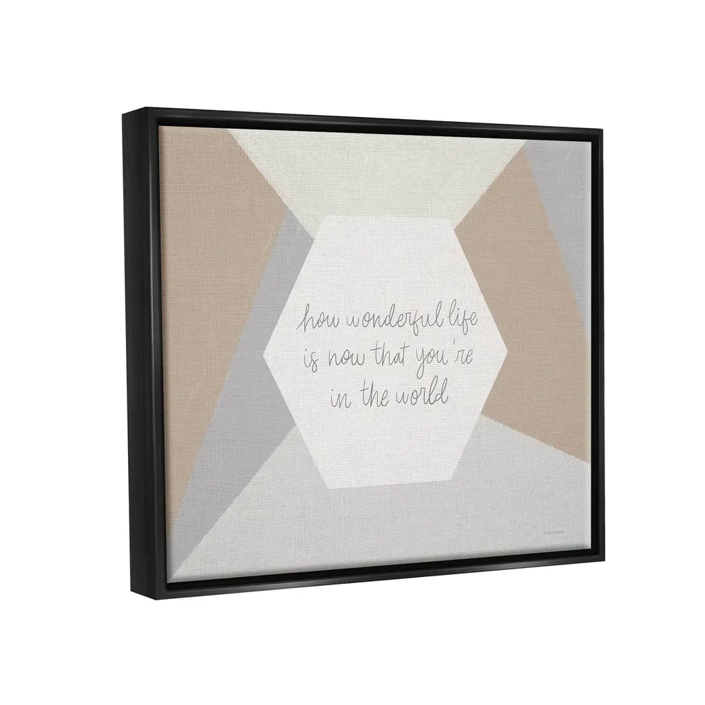 Elevate your home or office to the next level with Stupell Framed Floating Canvas Wall Art. Our premium hand stretched canvas is mounted securely into a sturdy lightweight frame. The museum style gap between wrapped canvas and box frame gives the illusion of floating artwork.Features:Dimensions: 21 x 1.7 x 17 Frame, 20 x 1.5 x 16 Canvas ArtFloating Frame Sizes IncludeStandard: 21 x 1.7 x 17Oversized: 31 x 1.7 x 25Wall Art is Ready to Hang - No Installation or Hardware Needed. For Easy Set Up Lean or Layer Artwork on Shelf or Against Wall.Our elevated 1.7" Thick Floating Frame is the perfect complement to our canvas style Wall Art. We use only the highest quality inks in house with industry leading printing solutions. Canvas is hand stretched over a durable wood foundation and then mounted securely into a Modern Box Frame. Made in the USA.Artwork Relates To: Geometric, Beige, Neutral Tones, Phrase, TypographyDesign by Lady Louise Designs