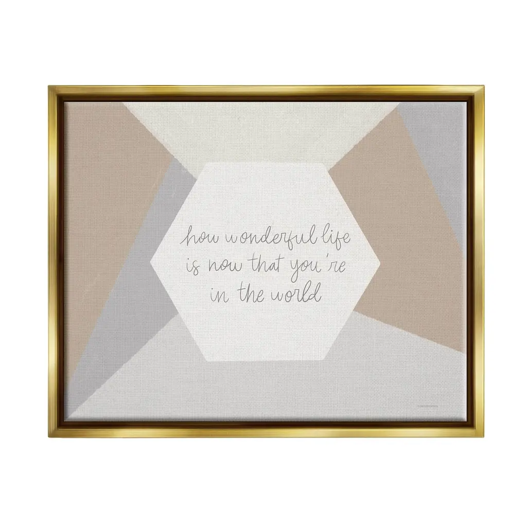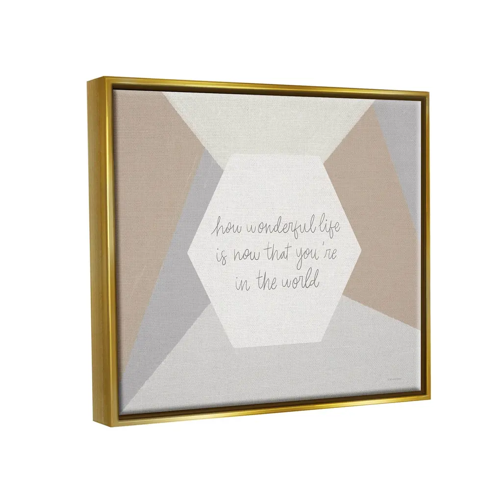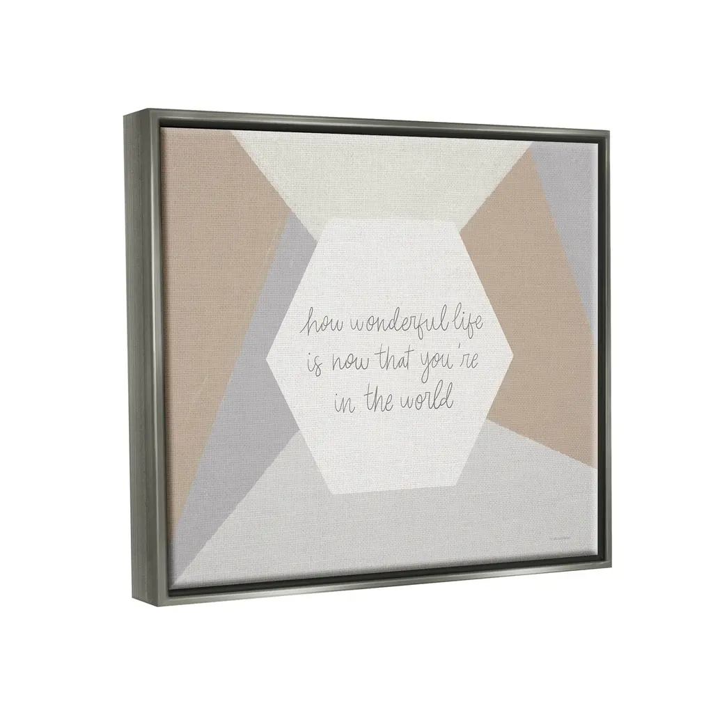 Elevate your home or office to the next level with Stupell Framed Floating Canvas Wall Art. Our premium hand stretched canvas is mounted securely into a sturdy lightweight frame. The museum style gap between wrapped canvas and box frame gives the illusion of floating artwork.Features:Dimensions: 21 x 1.7 x 17 Frame, 20 x 1.5 x 16 Canvas ArtFloating Frame Sizes IncludeStandard: 21 x 1.7 x 17Oversized: 31 x 1.7 x 25Wall Art is Ready to Hang - No Installation or Hardware Needed. For Easy Set Up Lean or Layer Artwork on Shelf or Against Wall.Our elevated 1.7" Thick Floating Frame is the perfect complement to our canvas style Wall Art. We use only the highest quality inks in house with industry leading printing solutions. Canvas is hand stretched over a durable wood foundation and then mounted securely into a Modern Box Frame. Made in the USA.Artwork Relates To: Geometric, Beige, Neutral Tones, Phrase, TypographyDesign by Lady Louise Designs